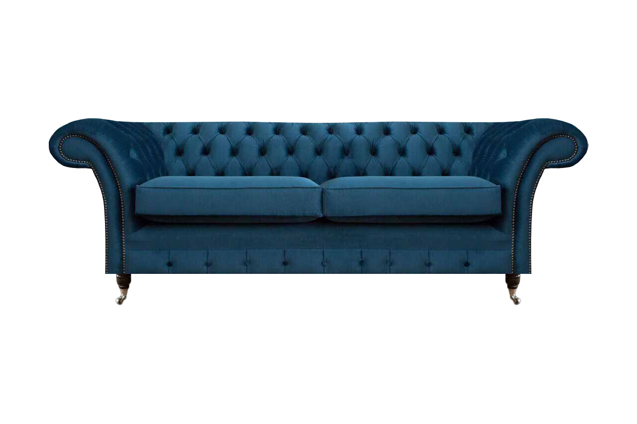 Erleben Sie den Inbegriff von Luxus und Komfort mit unserem eleganten 2-Sitzer Sofa. Dieses exquisite Möbelstück kombiniert klassisches Chesterfield-Design mit moderner Eleganz und wird zum Highlight in jedem Wohnzimmer. Das 2-Sitzer Sofa zeichnet sich durch seine hochwertige Handwerkskunst und die Verwendung bester Materialien aus. Die tiefen Knopfdetails im Chesterfield-Stil verleihen dem Sofa einen klassischen und zugleich luxuriösen Look. Die großzügige Polsterung sorgt für einen herausragenden Sitzkomfort, während die ergonomische Sitztiefe optimalen Halt bietet. Das Sofa besteht aus einem robusten Holzrahmen und ist mit einem strapazierfähigen, eleganten Textilbezug in Blau versehen. Dieser Bezug ist nicht nur ästhetisch ansprechend, sondern auch pflegeleicht und langlebig. Auf Anfrage sind auch andere Farben erhältlich, sodass Sie das Sofa perfekt an Ihre bestehende Einrichtung anpassen können. Die möglichen Farben finden Sie unter dem Reiter "Farben". Mit unserem luxuriösen 2-Sitzer Sofa bringen Sie Eleganz und Komfort in Ihr Zuhause. Genießen Sie das Zusammenspiel von klassischem Design und modernem Komfort, das dieses exquisite Möbelstück bietet.