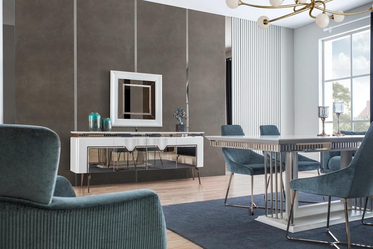 Designer Esszimmer Set Besteht aus 2tlg. Sideboard Spiegel Kommode Silber