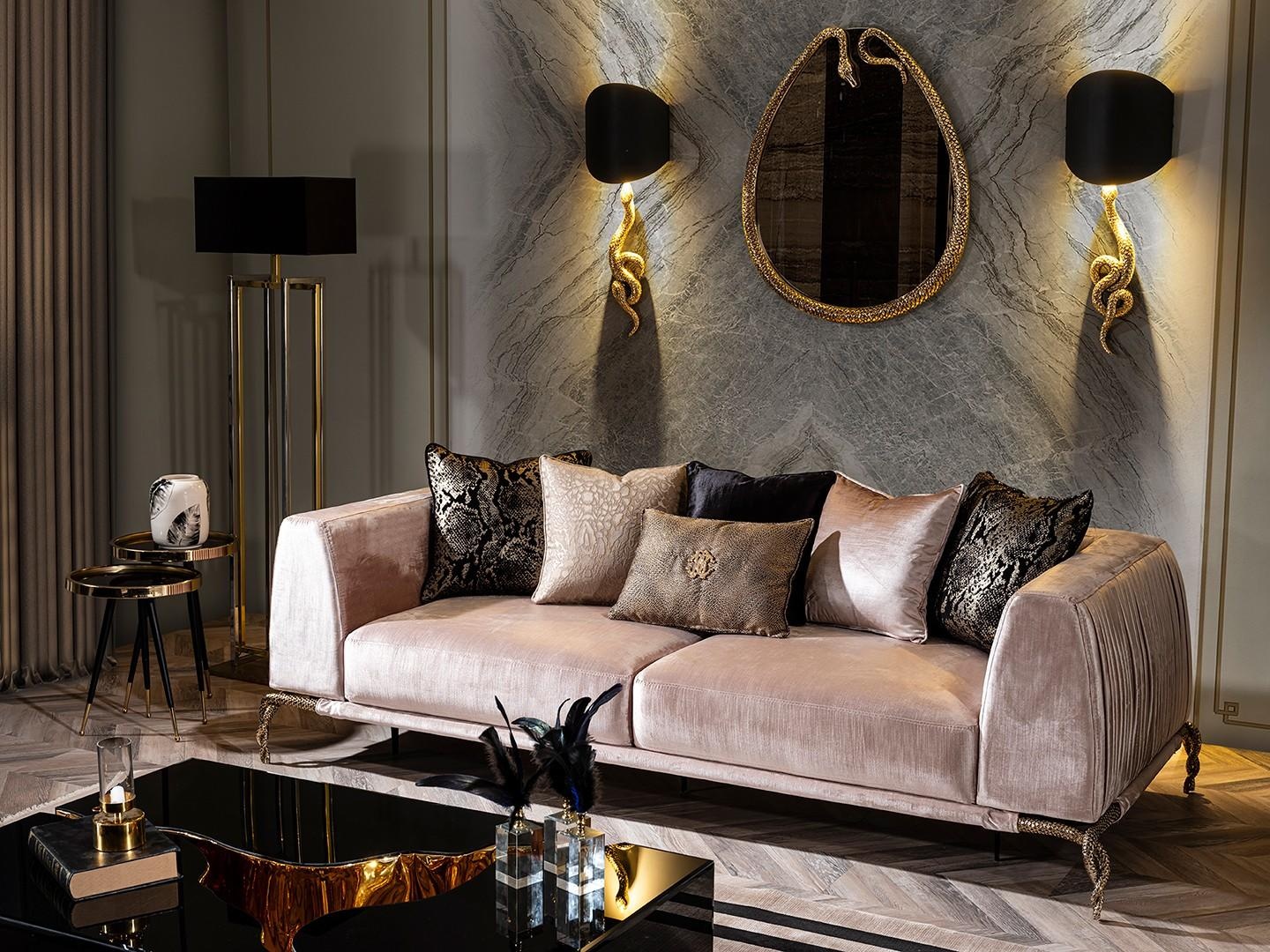 7-delni komplet pohištva za dnevno sobo z kavčem, lampo, ogledalom in pufom