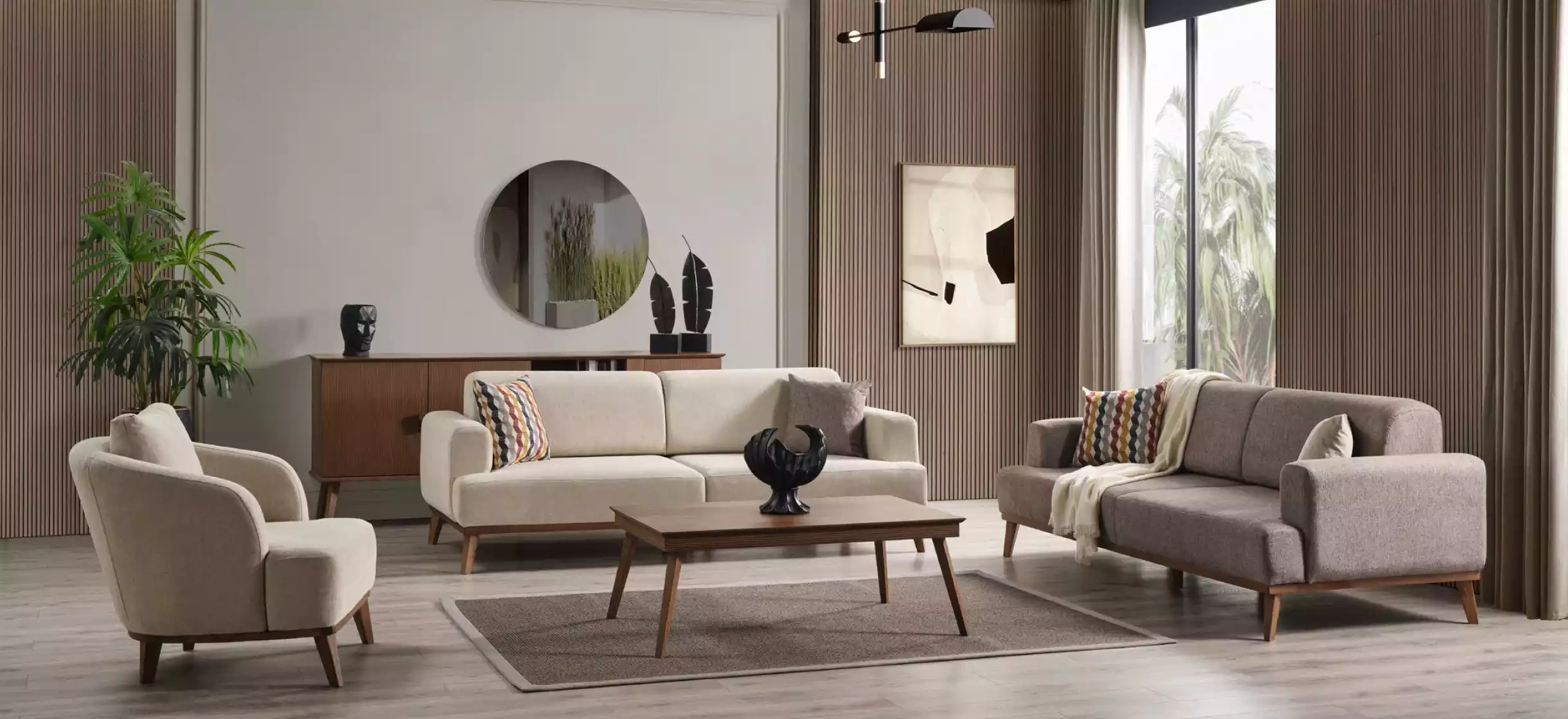 Komplet pohištva za dnevno sobo 331 predstavlja vrhunec elegance in udobja. S svojim 3-sedežnim kavčem in počivalnikom v nežni bež barvi iz visokokakovostnega poliestra prinaša brezčasno estetiko in sodobno funkcionalnost. Vsak kos je skrbno oblikovan, da zagotovi vrhunsko udobje in trajnost, kar ga dela idealno izbiro za prefinjeno bivalno okolje. Ta 4-delna skupina je zasnovana za tiste, ki cenijo kakovost in ekskluzivnost. S svojim minimalističnim dizajnom in sofisticirano barvno paleto se zlahka vklopi v različne interiorje, hkrati pa ustvarja prijetno vzdušje, ki odraža vaš stil življenja. Izberite komplet 331 in uživajte v luksuzu, ki ga prinaša.