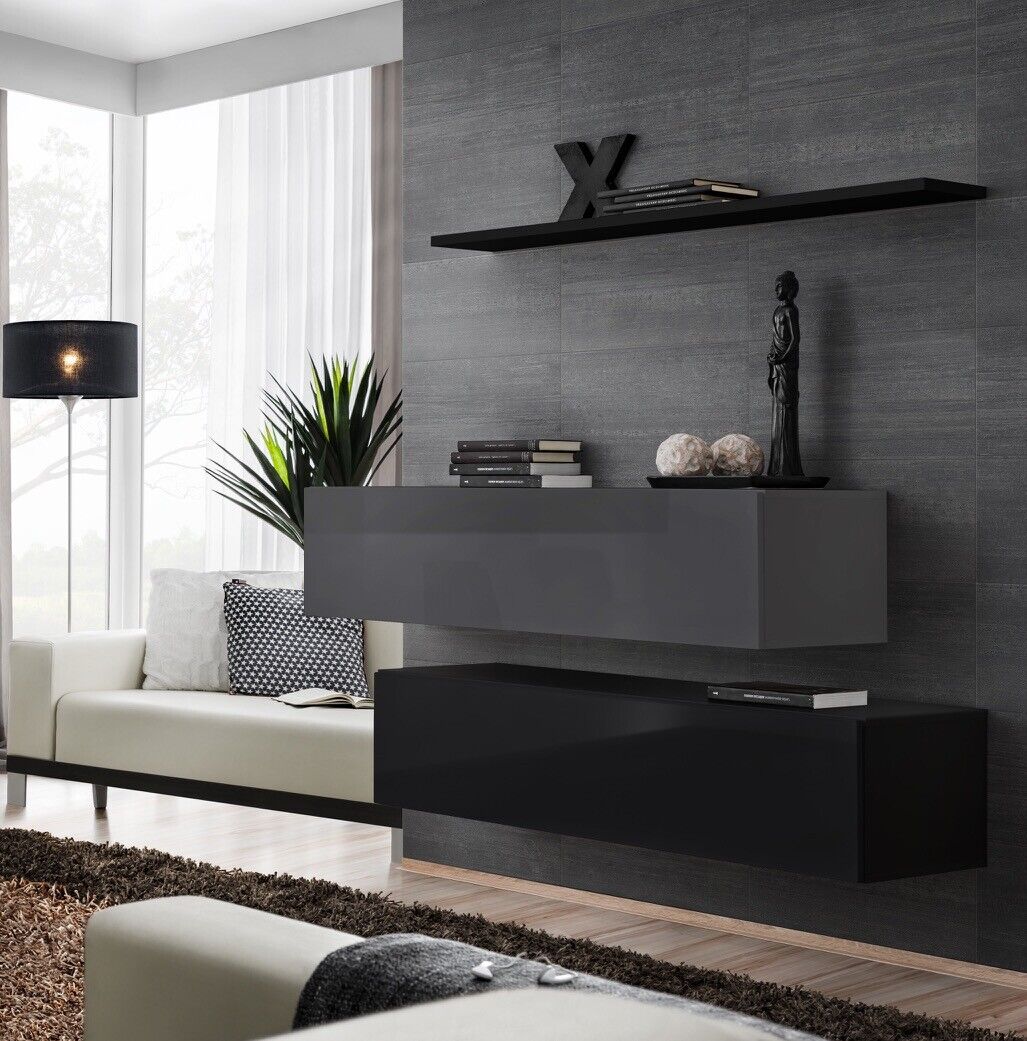 Wohnwand Wohnzimmer Schrankwand Modern Schwarz Holz Schrank Wand Regal