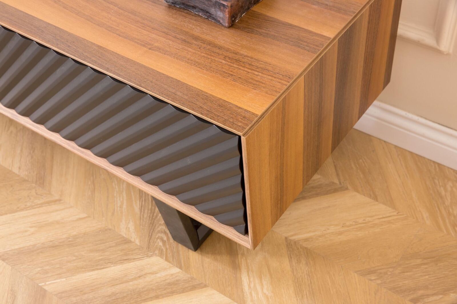 Entdecken Sie unser modernes Wohnzimmer-Set von XL Moebel! Diese stilvolle Wohnwand besteht aus einem TV-Ständer und zwei Hängeschränken, die Ihrem Wohnzimmer einen Hauch von Designer-Eleganz verleihen. Hergestellt aus hochwertigem Holz und Edelstahl, hat dieses Set die Maße TV-Ständer: ca. 210 x 50 x 50 cm und 2x Hängeschränke: ca. 30 x 25 x 90 cm. Die elegante Farbkombination und das zeitgemäße Design machen dieses Wohnzimmer-Set zu einem Highlight in jedem Zuhause. Perfekt für Ihre Unterhaltungsecke! Bestellen Sie jetzt und verschönern Sie Ihr Zuhause.