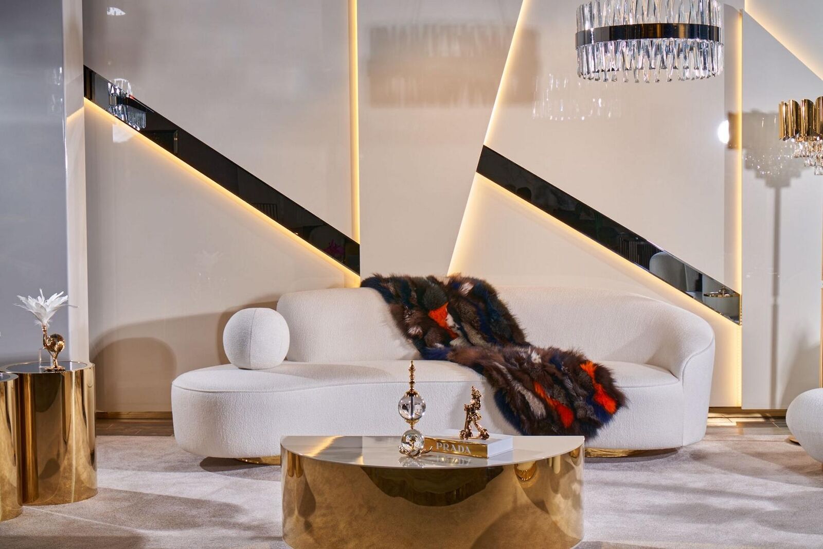 Luxuriös, Weiße Wohnzimmergarnitur, 3-Sitzer, Sessel, Runder Couchtisch, Eleganz, Stilvoll, Wohnzimmer