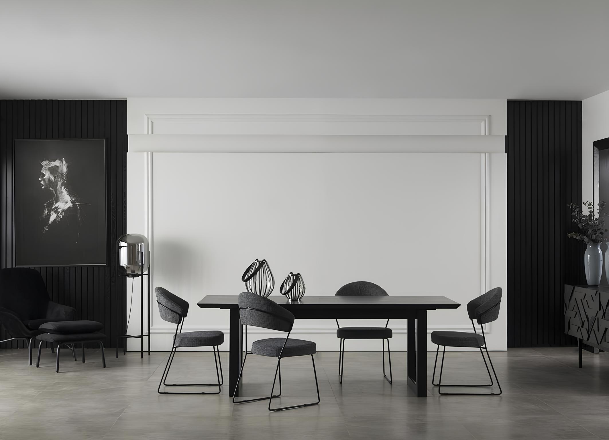Möbelset Mustan z omaro, stoli in mizo predstavlja vrhunec elegance in prefinjenosti. Izdelan iz črnega poliestra, ta komplet prinaša brezčasno estetiko, ki se brez truda vklopi v vsak dom. Njegove čiste linije in premišljena zasnova ustvarjajo prostor, ki izžareva luksuz in udobje. Popolna izbira za tiste, ki cenijo vrhunske materiale in izjemno pozornost do detajlov, Möbelset Mustan ne ponuja le funkcionalnosti, temveč tudi estetski užitek. S tem kompletom pripeljete domov kos umetnosti, ki odraža vaš prefinjen slog in ekskluziven življenjski standard. Z več kot 20-letnimi izkušnjami na področju luksuznega pohištva je ta set garantirano zanesljiv in brezčasno eleganten.
