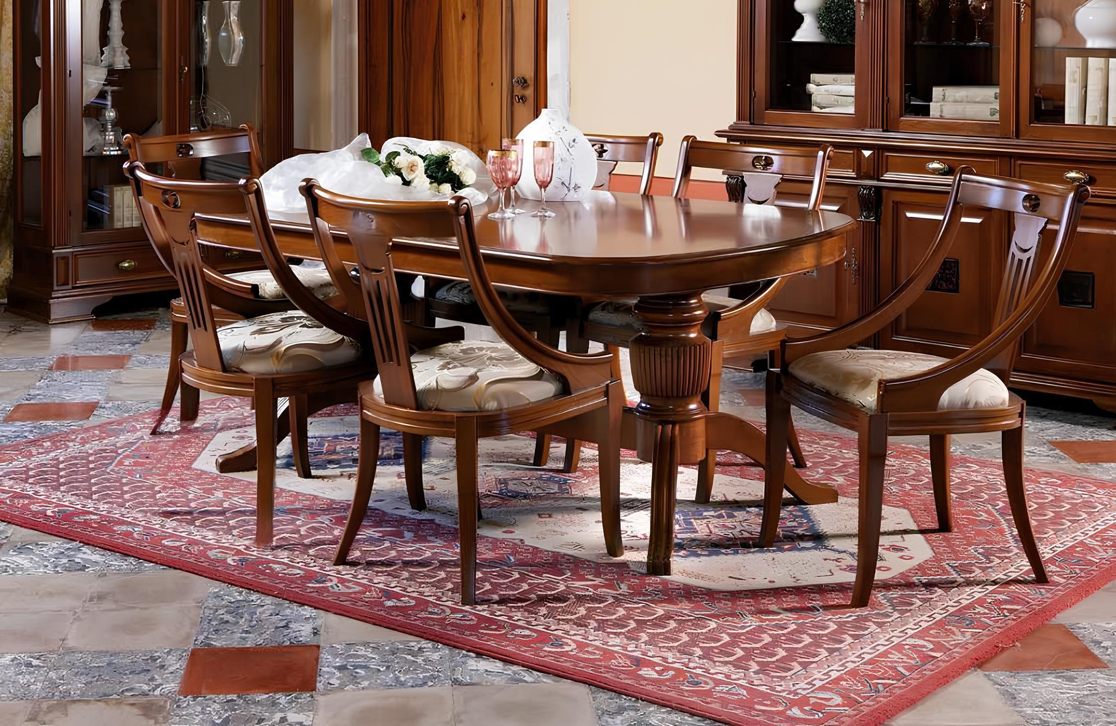 Set jedilne mize s 4 klasičnimi stoli v 5 delih predstavlja vrhunec elegance in prefinjenosti, ki dopolnjuje vsak prostor. Njegova bogata rjava barva in skrbno izbrani materiali izžarevajo toplino ter ustvarjajo prijetno vzdušje. Miza je zasnovana za druženje in uživanje v najboljših trenutkih, medtem ko klasični stoli ponujajo udobje in podporo, ki ju potrebujete pri vsakem obroku. Ta set ni le pohištvo; je simbol ekskluzivnega življenjskega sloga, ki ga ponuja naša blagovna znamka z dvajsetletno tradicijo v proizvodnji luksuznega pohištva. Izberite ta set in dovolite, da vaša jedilnica postane prava oaza sofisticiranosti.