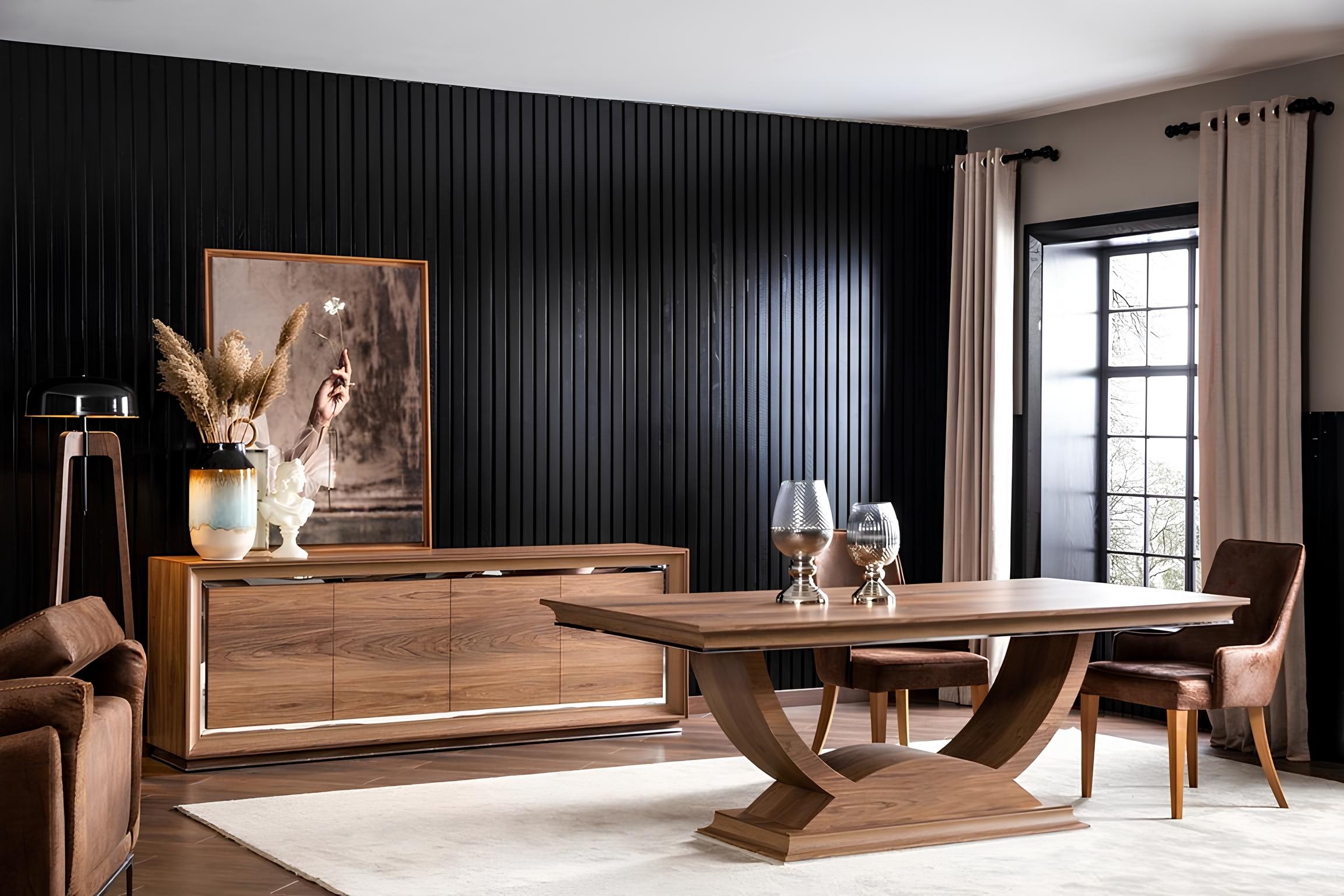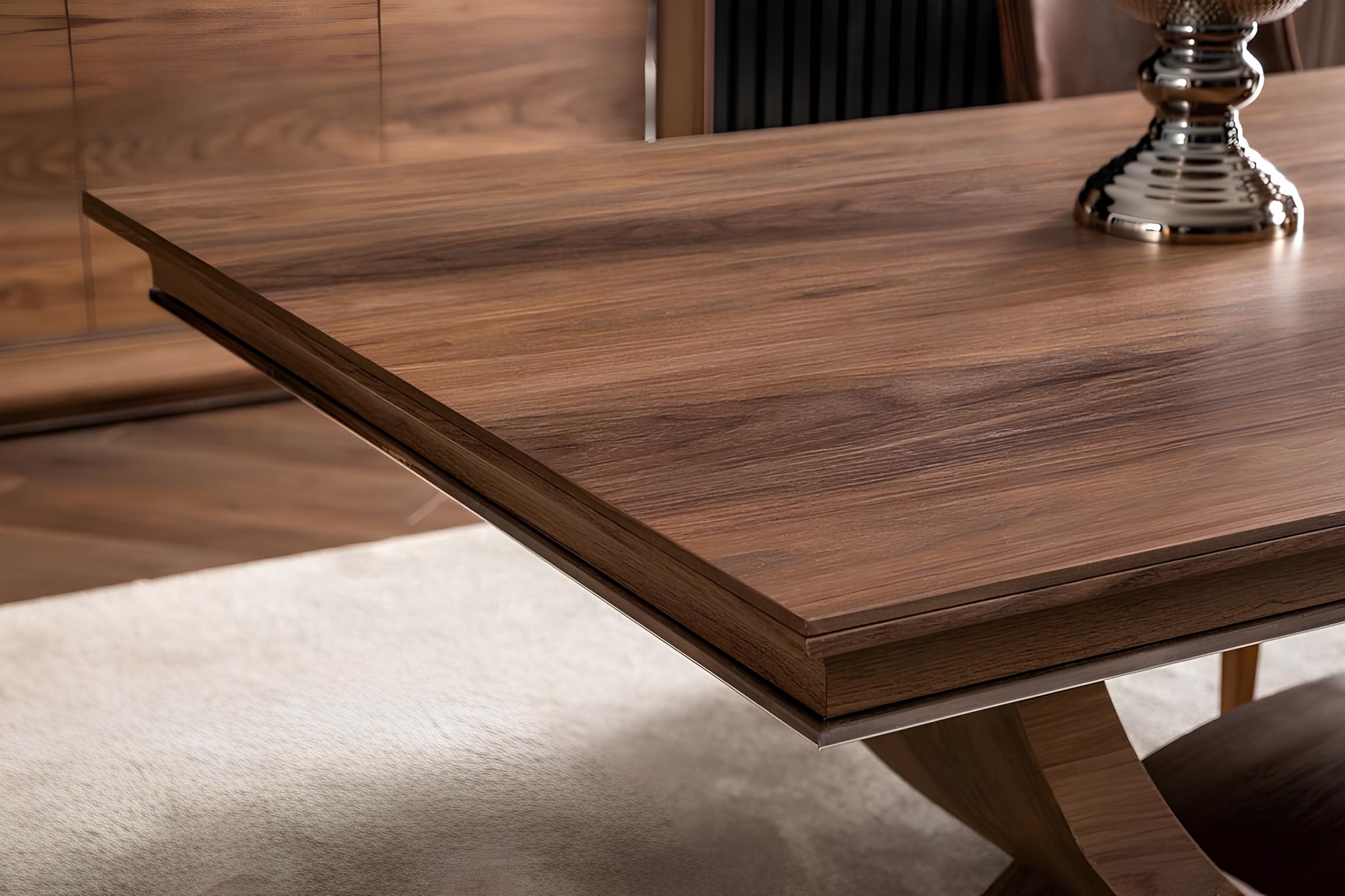 Eleganten jedilni miza z nogami je vrhunec prefinjenosti in funkcionalnosti, zasnovana za tiste, ki cenijo edinstvenost v vsakem detajlu. Njena rjava barva in izjemna kakovost materialov ustvarjata topel in privlačen ambient, ki se brezhibno ujema z različnimi slogi notranje opreme. Miza ni le prostor za druženje, temveč tudi umetniško delo, ki izžareva eleganco in prestiž. S svojo premišljeno zasnovo in robustno konstrukcijo je ta jedilna miza idealna izbira za tiste, ki želijo svojemu domu dodati pridih luksuza. Z več kot dvajsetletnimi izkušnjami v oblikovanju vrhunske pohištvene opreme, predstavlja ta kos simbol ekskluzivnega življenjskega sloga.