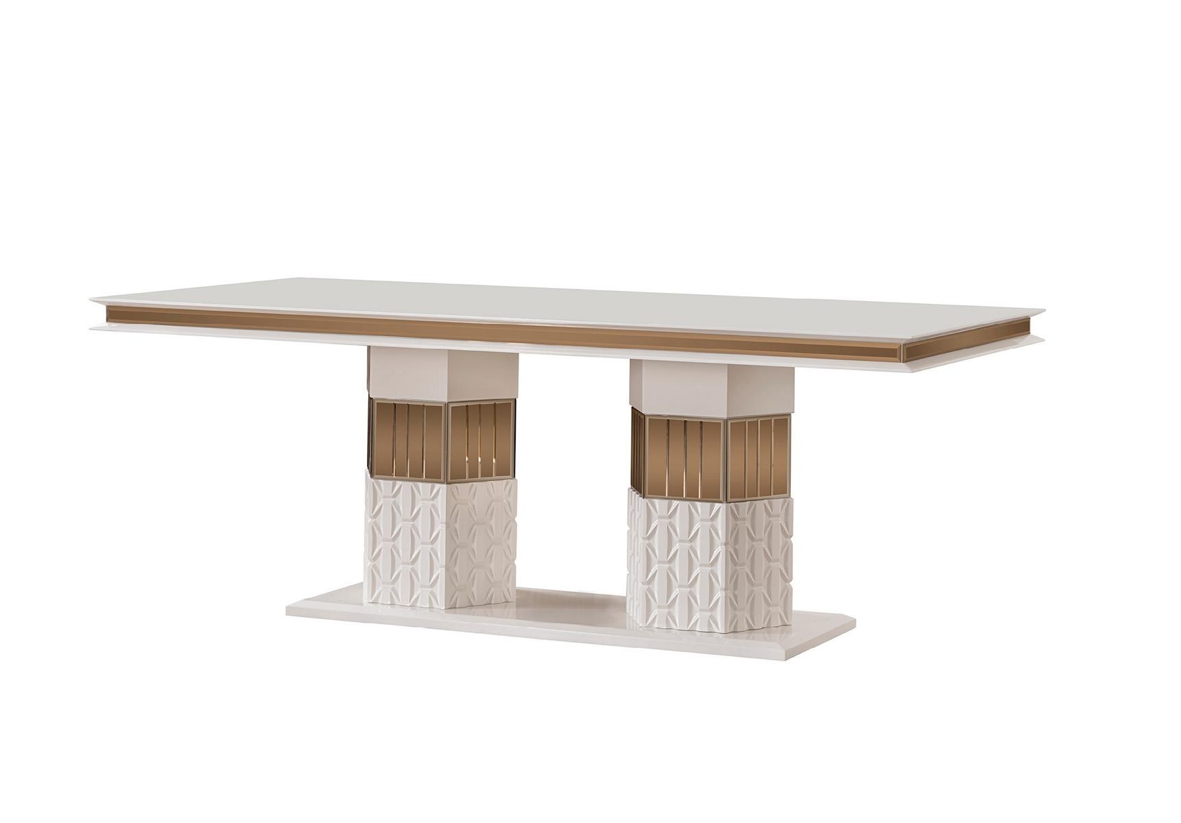 Luksuzna zlata zasnova lesenega jedilnega mize združuje brezčasno eleganco in sodobno estetiko, kar jo naredi za osrednji kos vašega doma. Njen prefinjen bel les, obogaten z zlatimi detajli, prinaša pridih razkošja in sofisticiranosti. Ta jedilna miza ni le funkcionalen element, temveč tudi umetniško delo, ki izžareva ekskluzivnost. Zasnovana za tiste, ki cenijo najvišje standarde oblikovanja, ponuja širok prostor za druženje in ustvarjanje nepozabnih trenutkov. Idealna izbira za tiste, ki želijo svoje bivalne prostore obogatiti z edinstvenim stilom in vrhunsko kakovostjo, ki jo nudi naša blagovna znamka, znana po dvajsetletni tradiciji v luksuznem pohištvu.