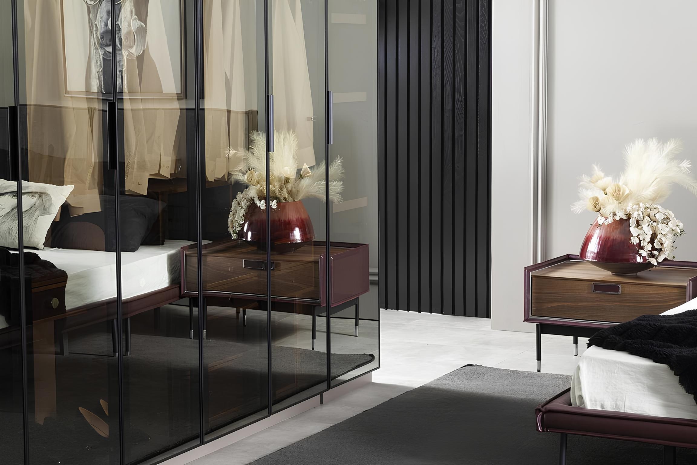Loft komplet za spalnico združuje brezčasno eleganco in vrhunsko funkcionalnost. Sestavljen iz postelje, omare, nočne omarice in komode s petimi predali, ta komplet predstavlja vrhunec sodobnega dizajna. Črna barva in izbrani materiali zagotavljajo sofisticiran videz, ki se brezhibno prilega vsakemu luksuznemu ambientu. Prostorna omara in praktična komoda omogočata organizacijo v slogu, medtem ko nočna omarica ponuja priročen dostop do potrebščin. Ta komplet je več kot le pohištvo; je izjava o vašem življenjskem slogu. Izberite Loft in uživajte v prefinjeni estetiki, ki jo prinaša dvajsetletna tradicija luksuznega oblikovanja.