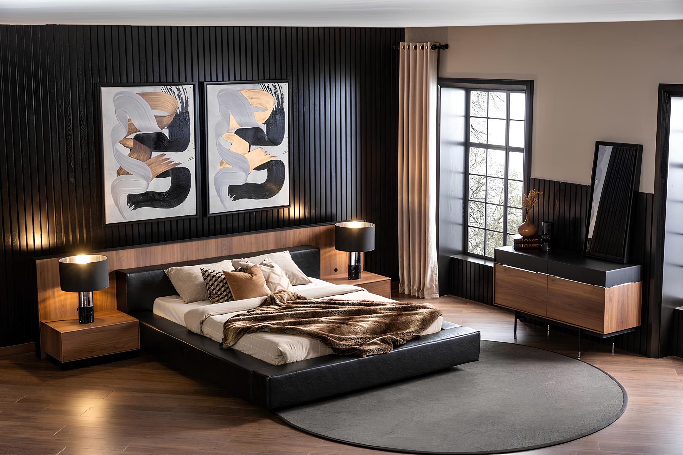 Luksuzna spalnica s kompletom pohištva z nočno omarico, omaro, mizo in posteljo v 6 delih