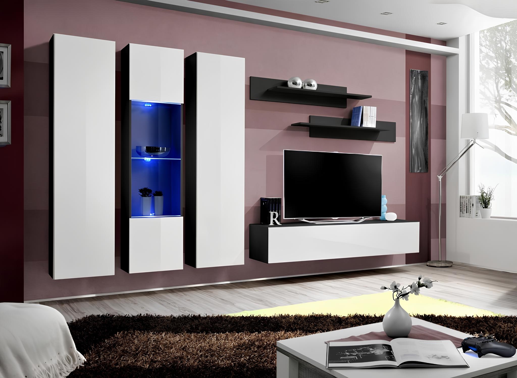 6-delni komplet za dnevno sobo s TV stojalom, stensko vitrino, lesenim policam | xlposlovno.si