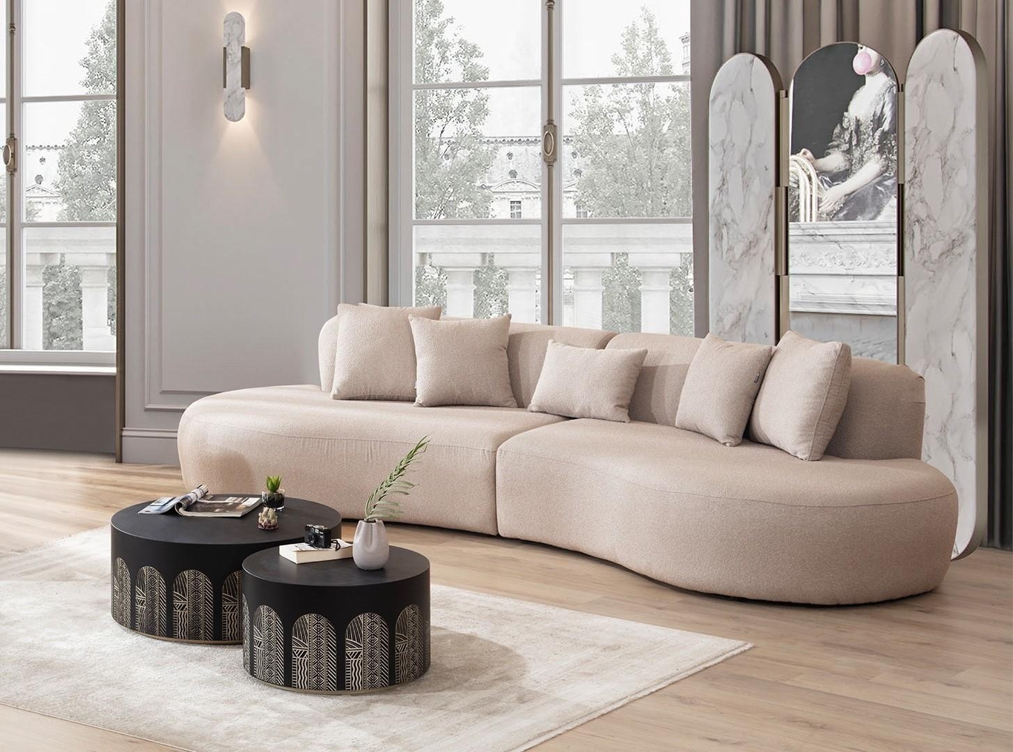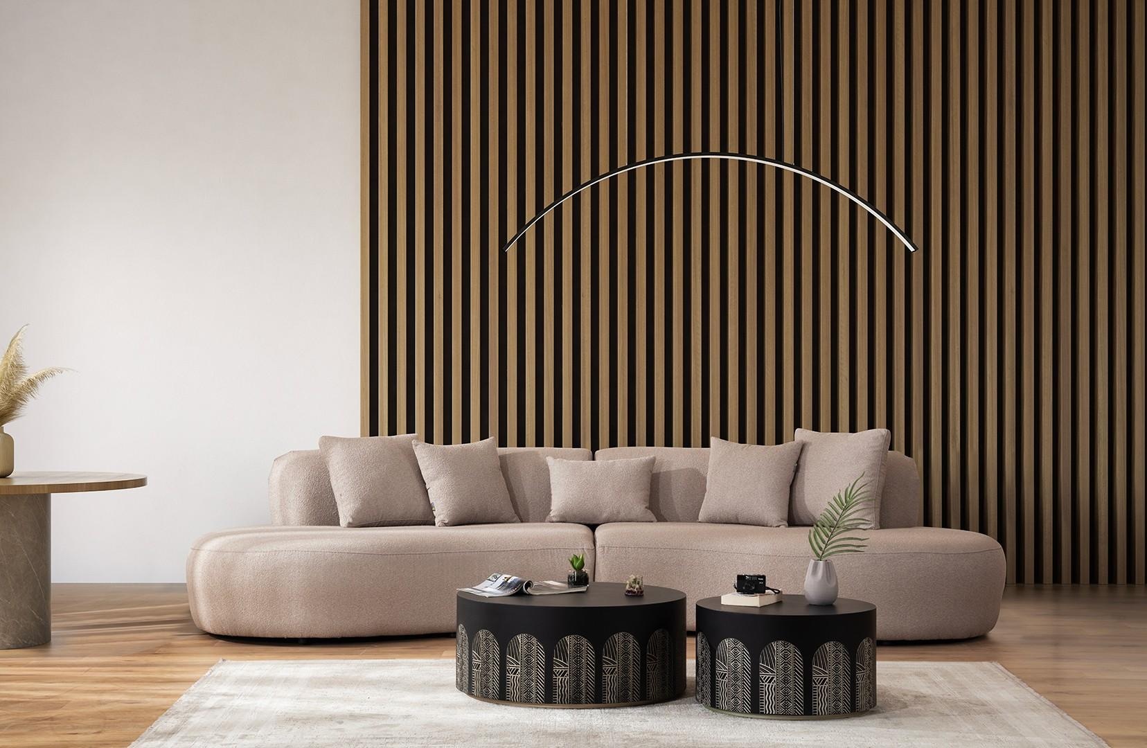5-delni komplet kavča za dnevno sobo, oblečen v prefinjen bež poliester, združuje eleganco in udobje na najvišji ravni. Njegova brezčasna zasnova prinaša občutek razkošja, ki se brezhibno vklaplja v vsak dom, obogatitev vaše dnevne sobe pa postane samoumevna. S široko izbiro premium dizajnov, ki jih ponuja naša blagovna znamka s 20-letno tradicijo, ta kavč odraža ekskluziven življenjski slog in visok estetski standard. Robustna konstrukcija zagotavlja trajnost, medtem ko mehki materiali vabijo k sprostitvi. Ta kos pohištva ni le sedež, temveč osrednji del vašega doma, ki ga bodo obiskovalci z veseljem občudovali.