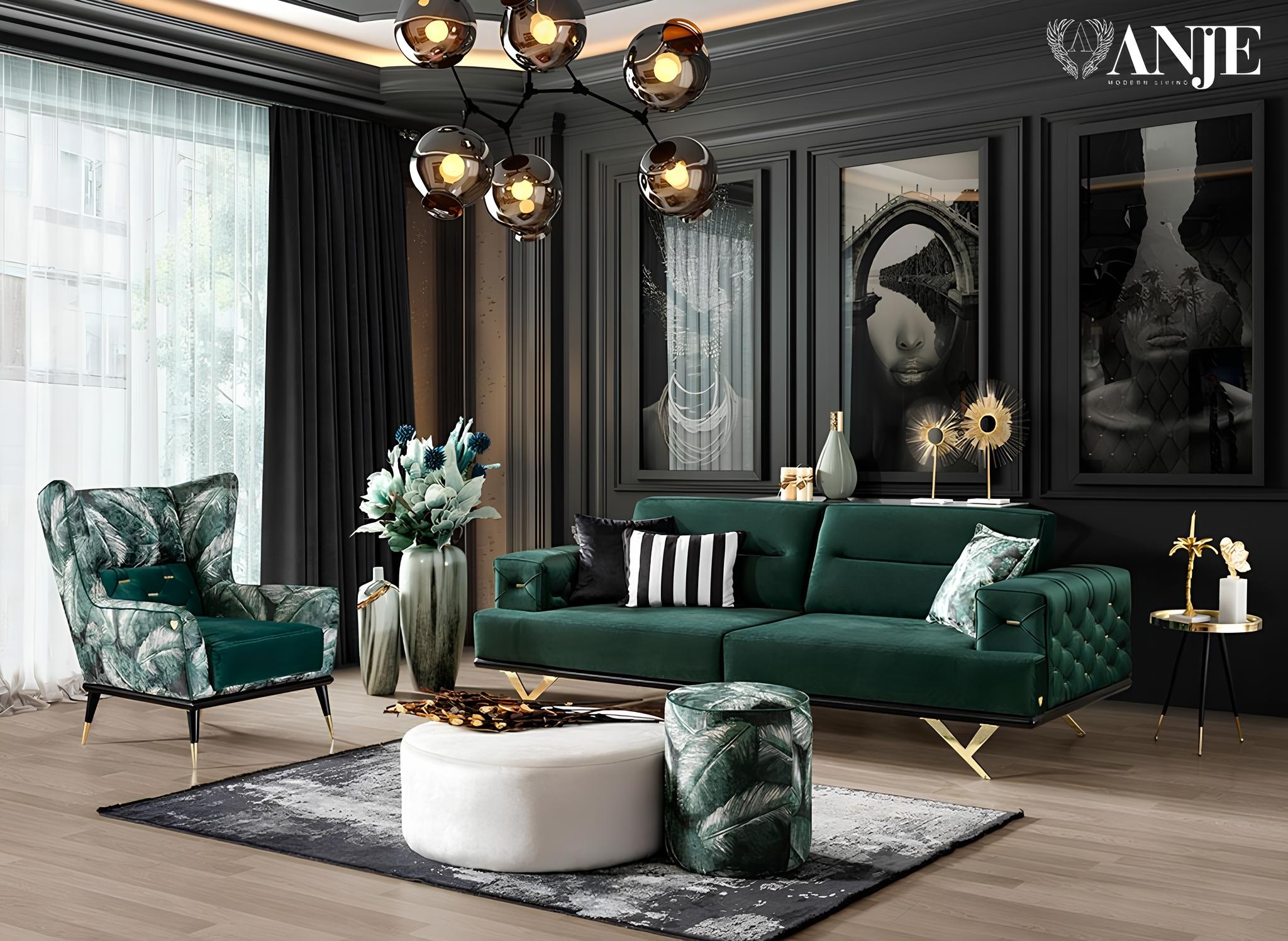 Komplet kavčev za dnevno sobo za tri osebe v zelenem nerjavečem jeklu predstavlja vrhunec sodobne elegance in funkcionalnosti. Njegova prefinjena zasnova združuje udobje in estetsko privlačnost, kar ga naredi nepogrešljivim elementom vsakega luksuznega doma. Zeleni poliester vnaša svežino in živahnost v prostor, medtem ko nerjaveče jeklo zagotavlja trajnost in stabilnost. Idealno je za druženja in sproščanje, saj ponuja prostor za tri osebne trenutke udobja. Ta kavč ni le pohištvo, temveč izraz vašega izbranega življenjskega sloga in estetskih vrednot. Izberite eleganco in kakovost, ki ju ponuja naš dvajsetletni obrtniški uspeh.
