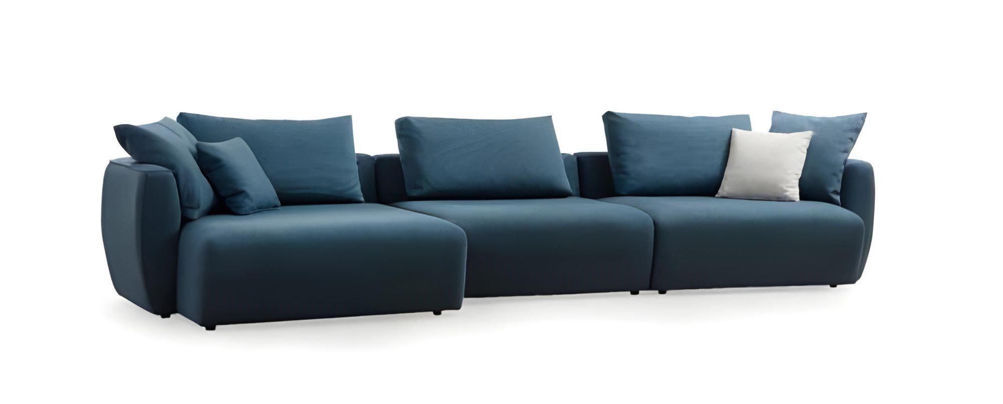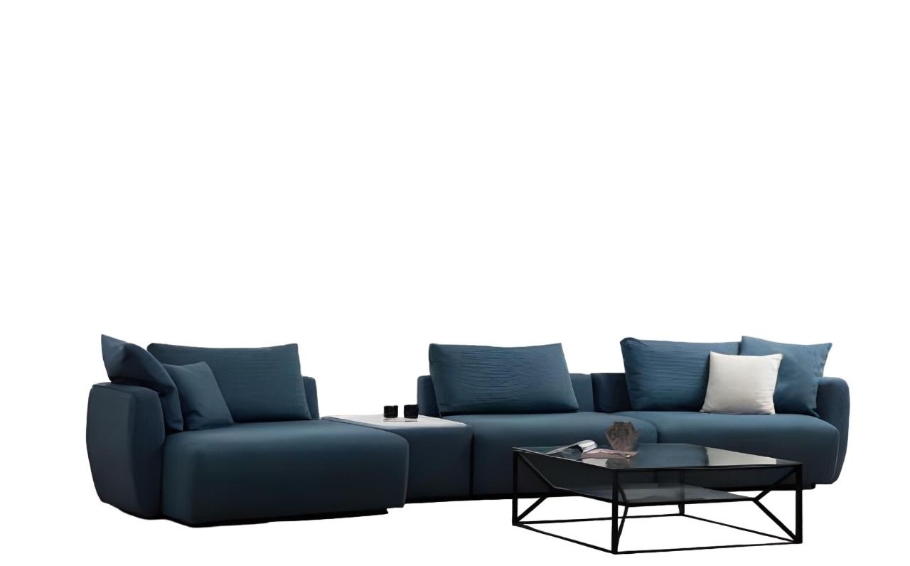 Luksuzni moderan modri L oblikovan kotni kavč za dnevno sobo | xlposlovno.si