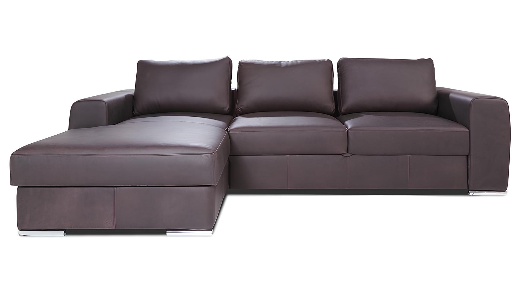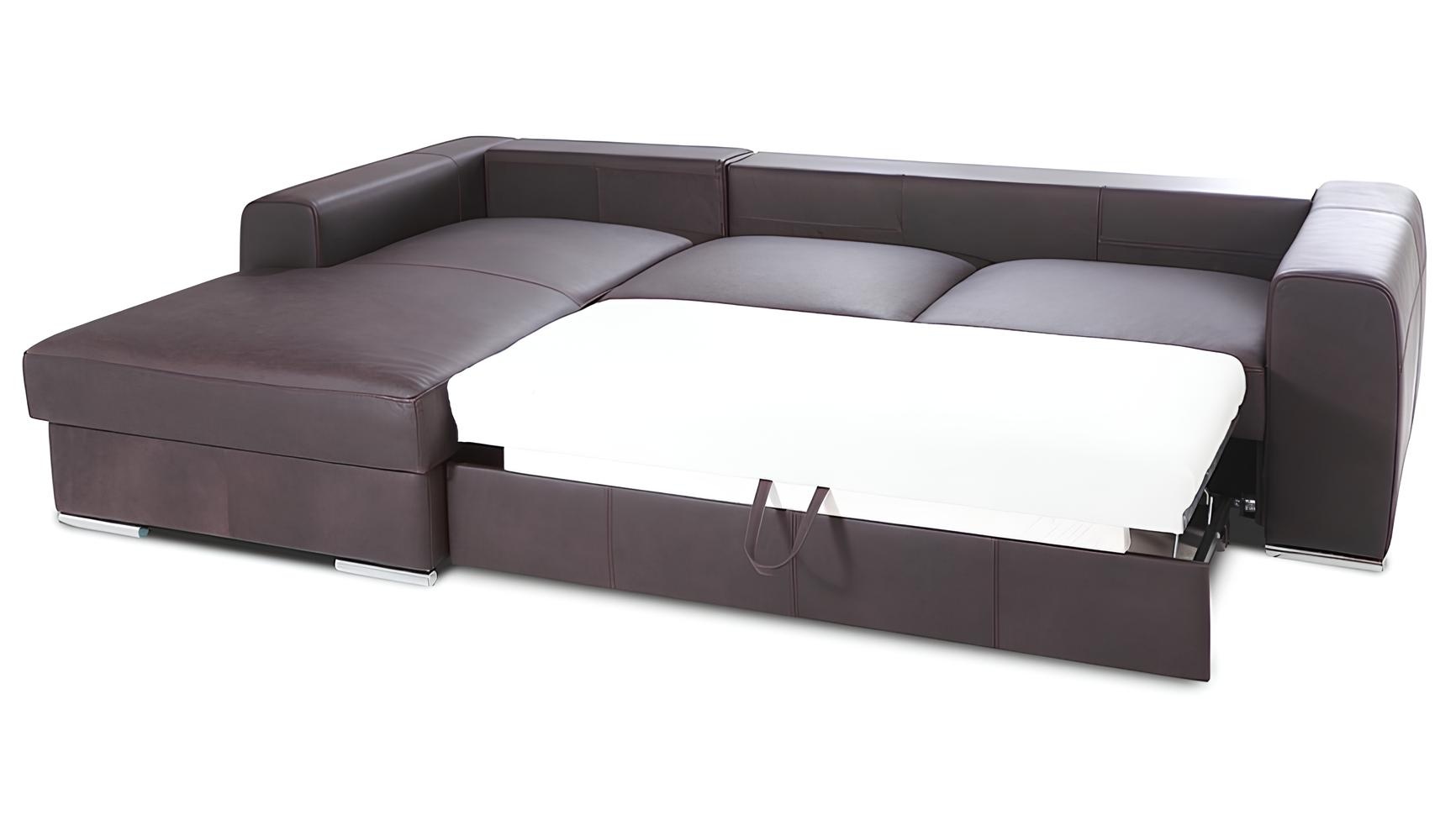 Moderna kotna sedežna garnitura z usnjenim zaključkom in funkcijo postelje