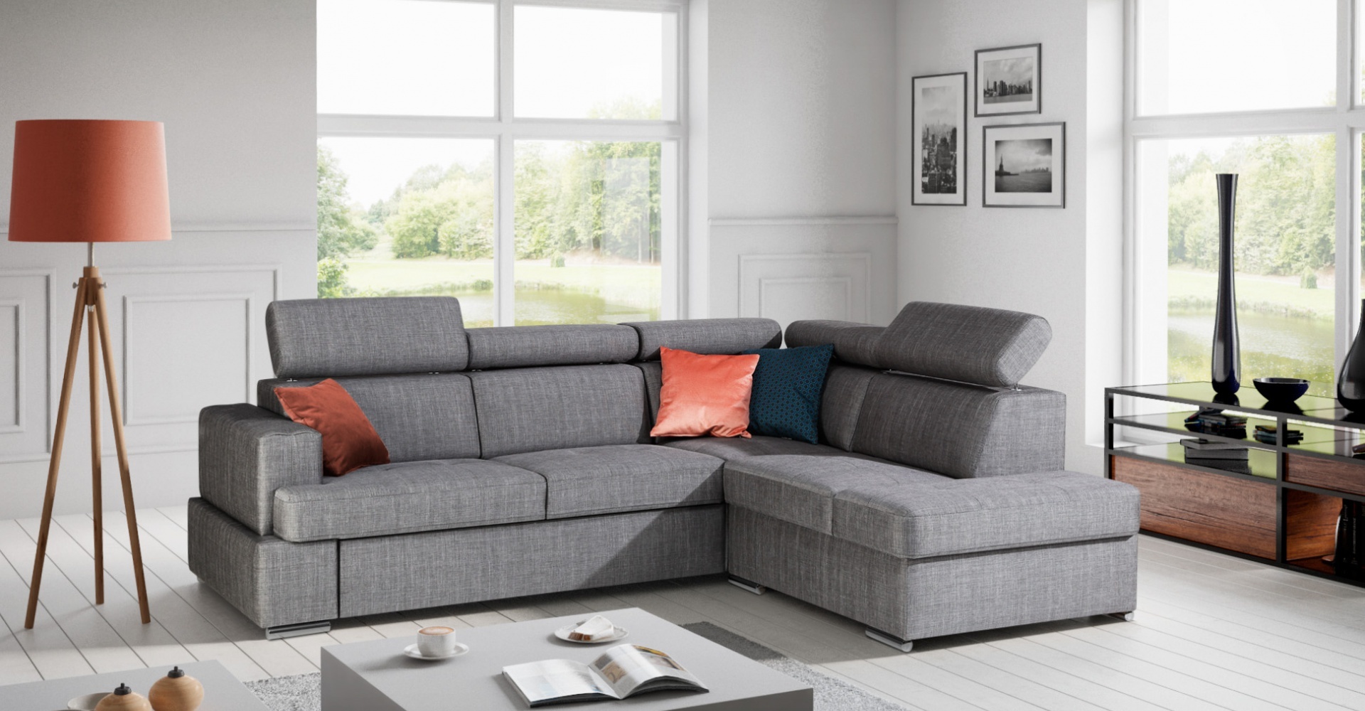 Moderna L-oblikna kavča z funkcijo postelje