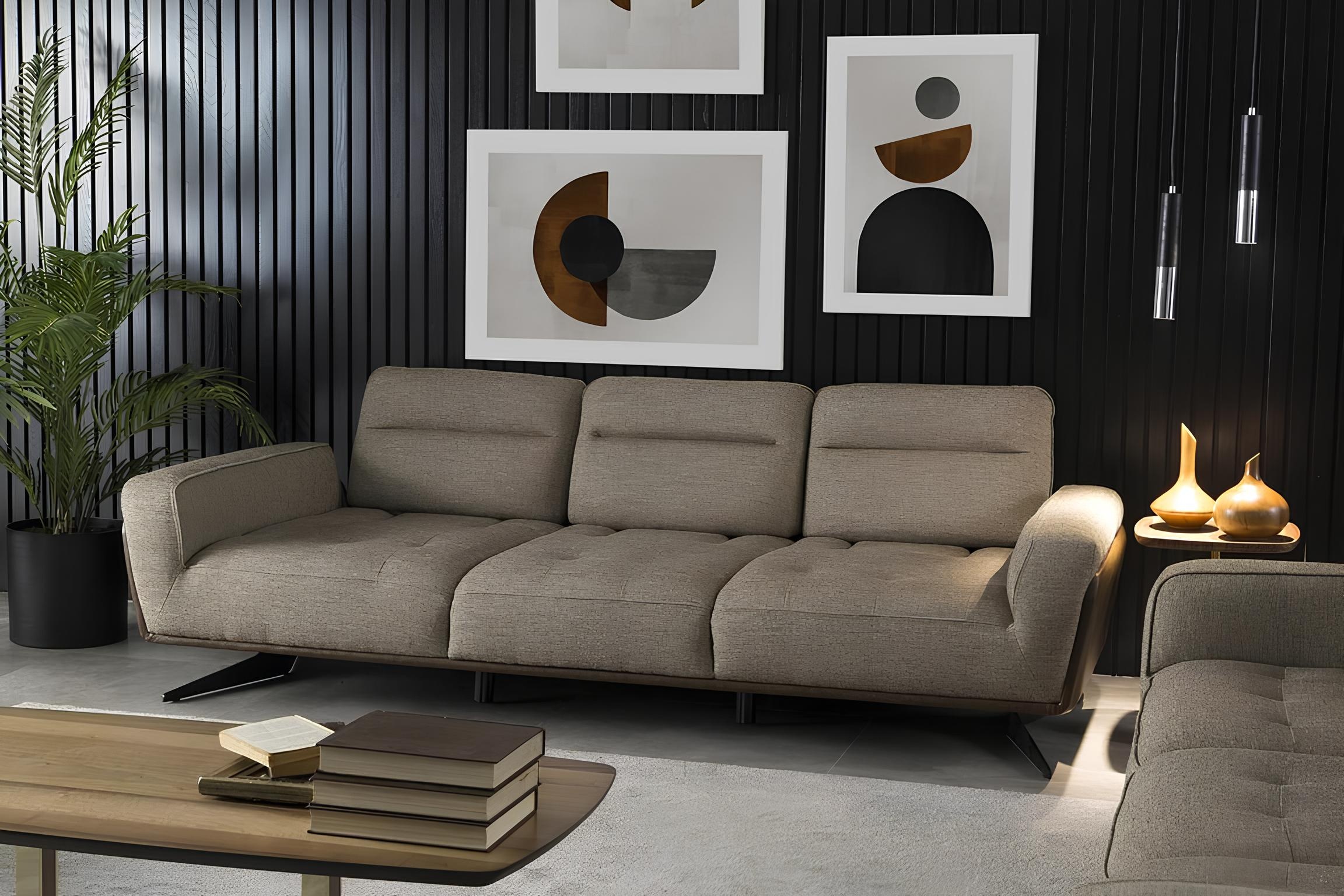 Praktična in prostorna kotna sedežna garnitura 260 cm, oblečena v rjavo poliester, je vrhunskega dizajna, ki združuje udobje in eleganco. Njen širok, prostoren oblikovalski koncept ponuja idealno rešitev za sodobne bivalne prostore, kjer se prefinjenost srečuje z vsakodnevno funkcionalnostjo. Rjava barva dodaja naravno toplino, kar omogoča enostavno usklajevanje z različnimi interierji. Garnitura, zasnovana za tiste, ki cenijo visokokakovostno pohištvo, predstavlja simbol ekskluzivnega življenjskega sloga. V 20 letih naše tradicije v luksuznem pohištvu smo skrbno izbrali vsak detajl, da bi vam ponudili izdelek, ki ne samo da zadostuje, temveč presega pričakovanja.