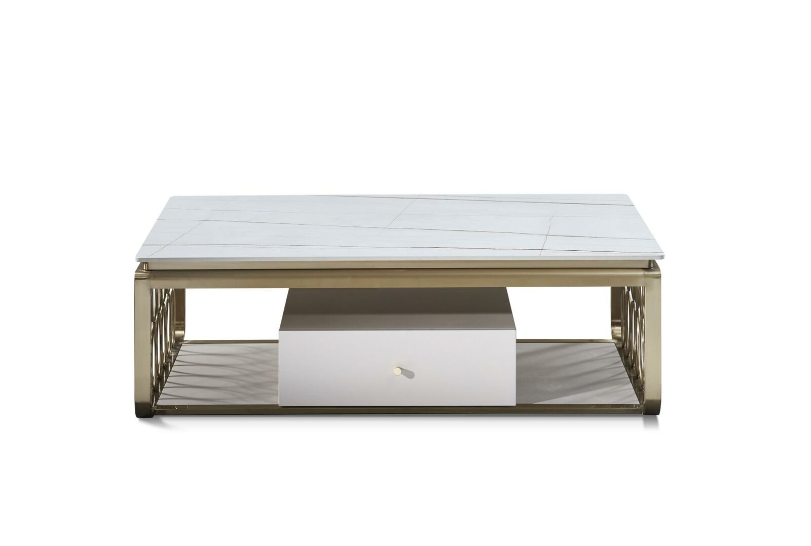 Erfrischen Sie Ihr Wohnzimmer mit diesem eleganten Couchtisch aus Holz mit Edelstahl und Marmor! Mit einer Länge von ca. 130 cm, einer Höhe von ca. 40 cm und einer Tiefe von ca. 70 cm verleiht dieser Tisch Ihrem Wohnraum ein stilvolles Ambiente. Die zeitlose Farbkombination aus Holz, Edelstahl und Marmor passt perfekt zu verschiedenen Einrichtungsstilen. Gönnen Sie sich diesen hochwertigen Beistelltisch und bringen Sie Luxus in Ihr Zuhause!