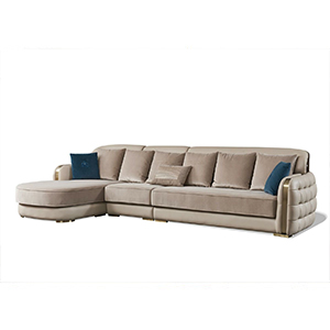 Eleganten L oblikovan kotni kavč s sodobnim 2-delni puf kompletom