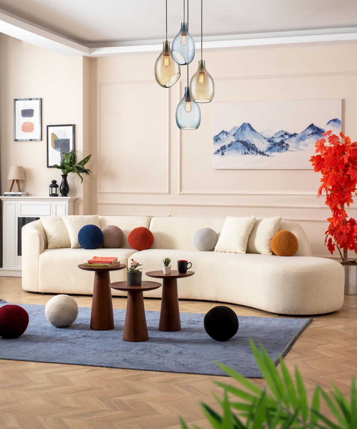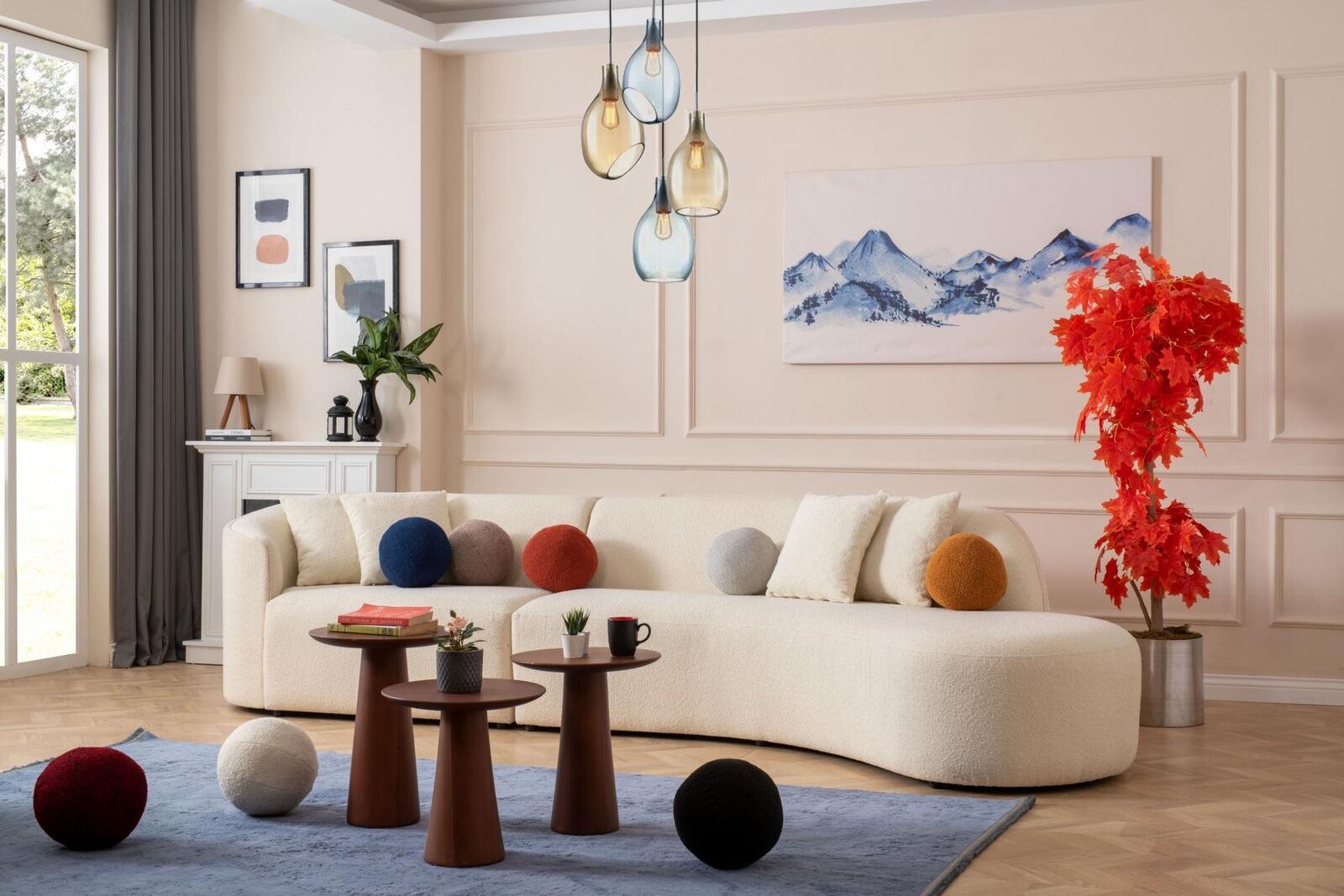 Weiße Designer-Couch, L-förmige Eckcouch, moderne Möbel, luxuriöses Wohnzimmer, stilvolle Eckgarnitur