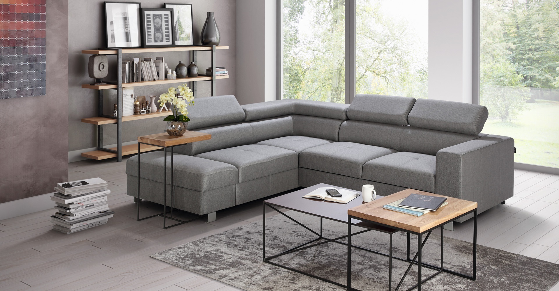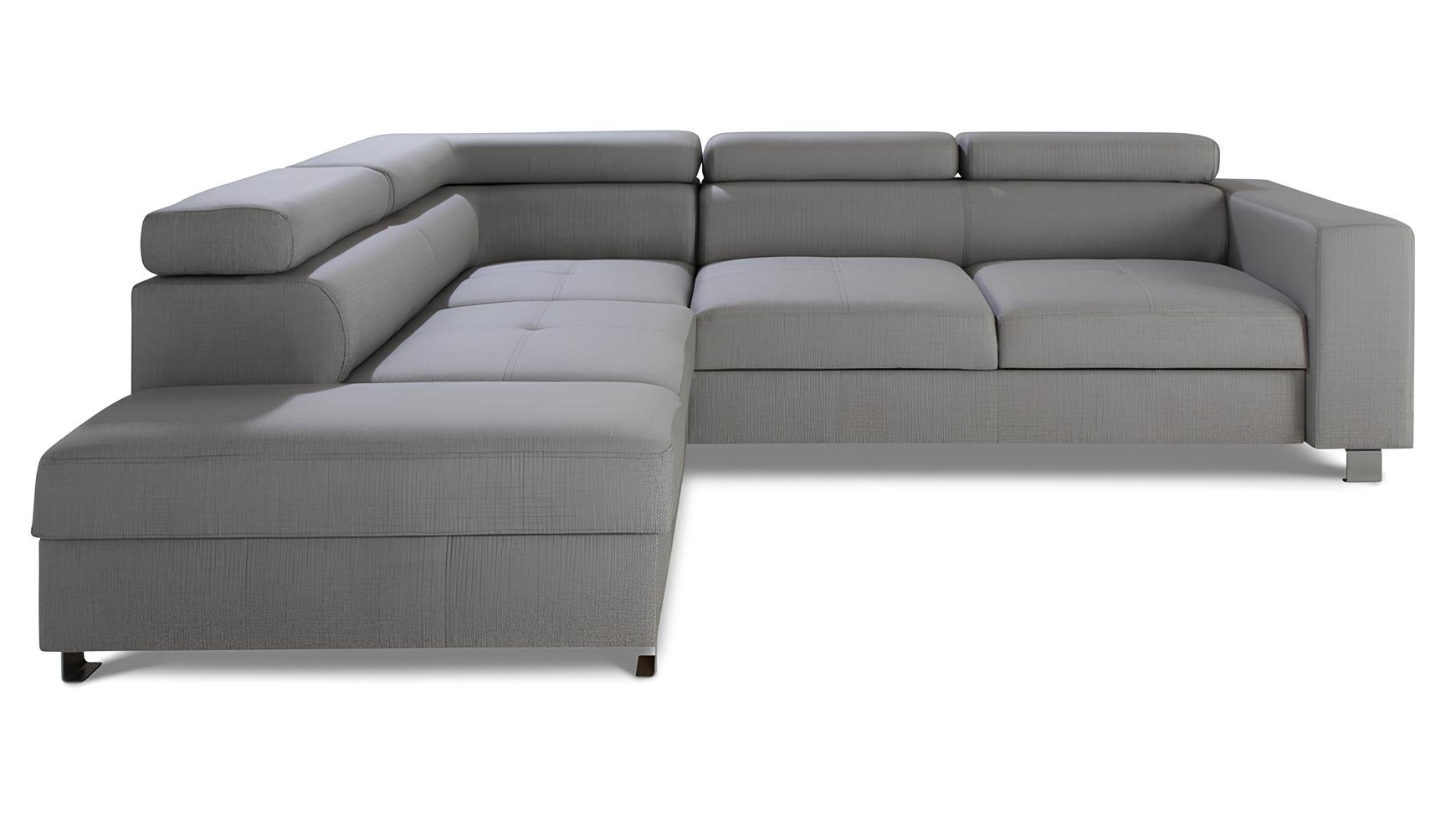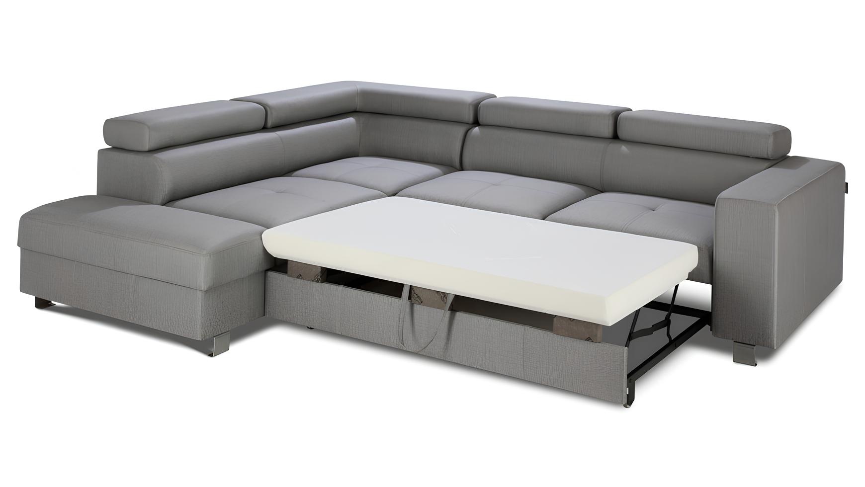 Siva kotna sedežna garnitura z funkcijo postelje, moderna L-oblika