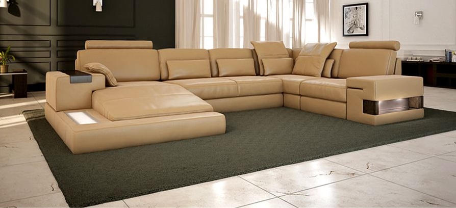 Design, Polster, Modern, Leder, Bettfunktion, U-Form Sofa, Couch