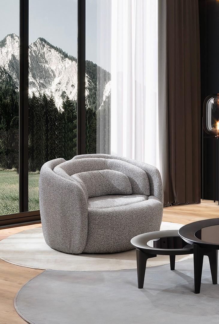 Okrogla počivalna klub stol je izjemen kos pohištva, ki združuje eleganco in udobje. Oblikovan v subtilni sivi barvi iz visokokakovostnega poliestra, prinaša sofisticiranost in brezčasno lepoto v vsak prostor. Njegova zasnova je skrbno premišljena, da nudi optimalno podporo ter zagotavlja neprekosljivo udobje med počitkom. Idealno se prilega sodobnim in klasičnim interierjem, kar ga dela popolno izbiro za tiste, ki cenijo prestiž in ekskluzivnost. Počivalna klub stol ni le pohištvo, temveč izjava o vašem življenjskem slogu, ki odraža 20-letno tradicijo naše blagovne znamke v svetu luksuznega oblikovanja.