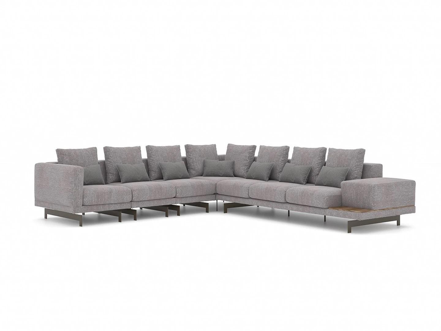 Luxus, Set, Wohnzimmer, Textil, Polstersofa, L-Form, Holz, Couchtisch, Beistelltisch, Einrichtung, Stilvoll