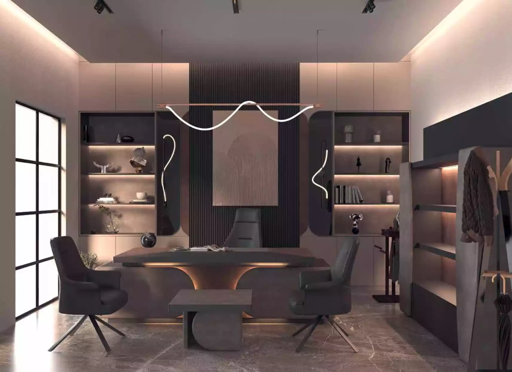 Ekskluzivna pisalna miza združuje dovršeno oblikovanje in vrhunsko funkcionalnost, kar jo postavlja na sam vrh luksuznega pohištva. Njena temno rjava barva izžareva prefinjenost, medtem ko material zagotavlja trajnost in eleganco. S svojimi premišljeno zasnovanimi proporcijami se miza brez težav vključuje v različne prostore, kar ji omogoča, da postane osrednji element vašega delovnega okolja. V 20-letni tradiciji naše blagovne znamke je ekskluzivna pisalna miza simbol razkošja in stila, ki odraža vašo željo po vrhunskem življenjskem slogu. Ta miza ni le kos pohištva; je izjavna točka, ki obogati vaš dom in dvigne njegovo estetiko na novo raven.