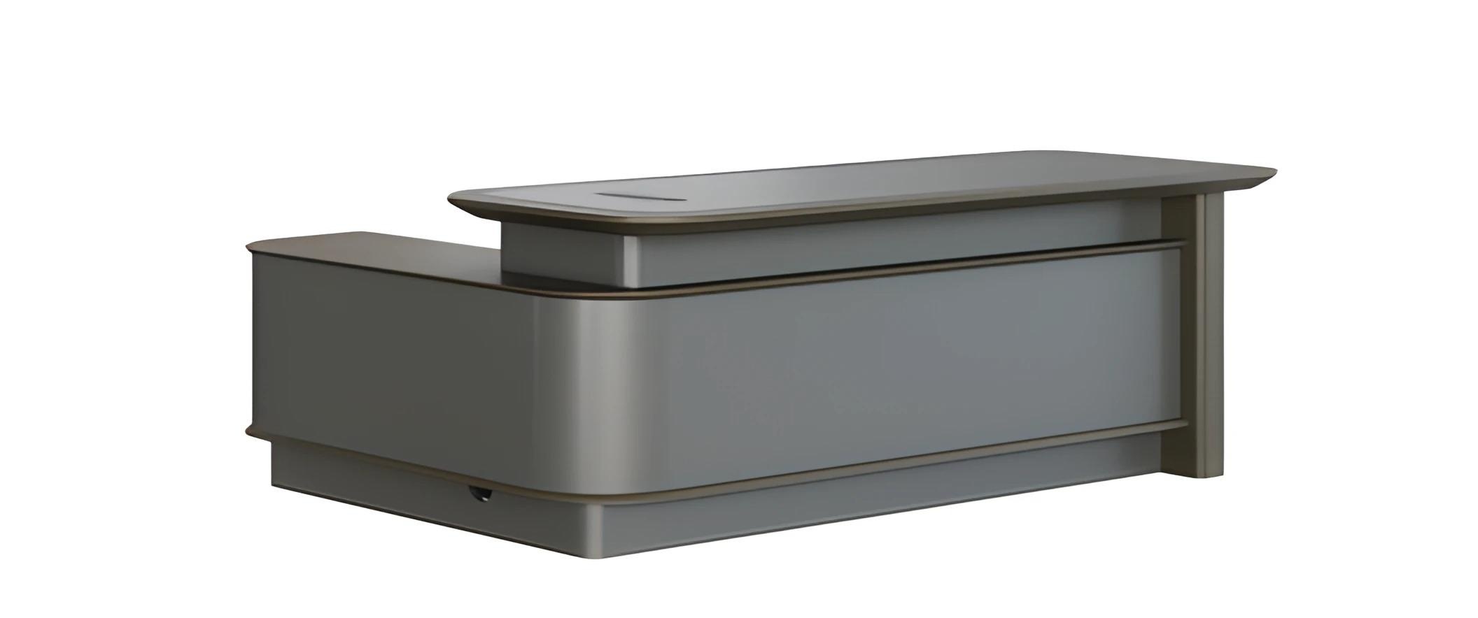 Moderna siva pisalna miza z shranjevanjem in upravljanjem kablov | xlposlovno.si
