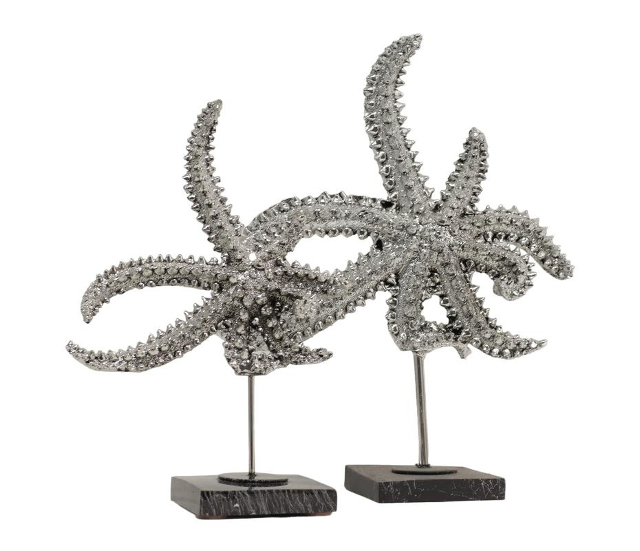 Set skulptur v obliki zvezde predstavlja vrhunec elegantnega oblikovanja, ki preobraža vsak prostor v oazo prestiža. Njegova srebrna površina se blešči z naravno lepoto, hkrati pa izžareva sofisticirano prefinjenost. Občutite, kako ta unikatni kos umetnosti prinaša občutek miru in harmonije, hkrati pa postaja osrednja točka vaše notranje opreme. Vsaka skulptura je skrbno oblikovana, kar odraža vrhunsko obrtniško znanje, ki ga naša blagovna znamka gradi že dve desetletji. Izberite set, ki ne le dopolnjuje vaš prostor, temveč tudi odraža vaš ekskluziven življenjski slog in estetske vrednote.