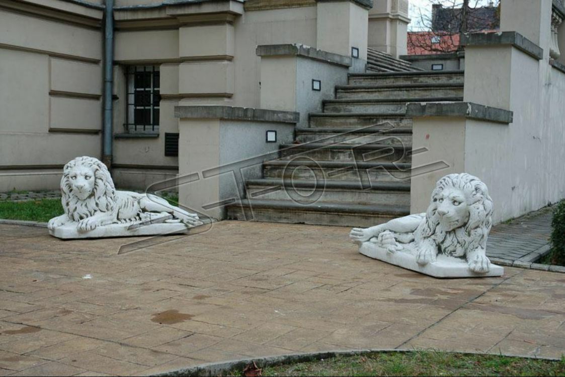 Löwe Liegend Statue Figur Garten Terrassen Dekoration Weiß Natur Skulptur