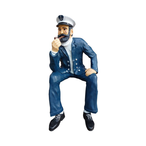 Entdecken Sie diese imposante Seemann Statue Skulptur, die Ihre Räume mit maritimem Flair schmücken wird. Die sitzende Statue in Form eines Seemannes mit einem freundlichen Gesichtsausdruck und einem Ahoi Käpten Gruß ist ein echter Blickfang. Mit einer Höhe von 123 cm wird sie sicherlich alle Blicke auf sich ziehen.