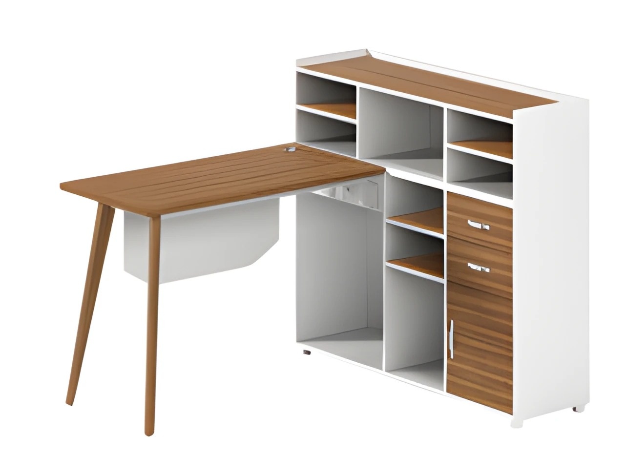 Lesena miza Balta z shrambo, odprtimi predali in elegantnimi nogami