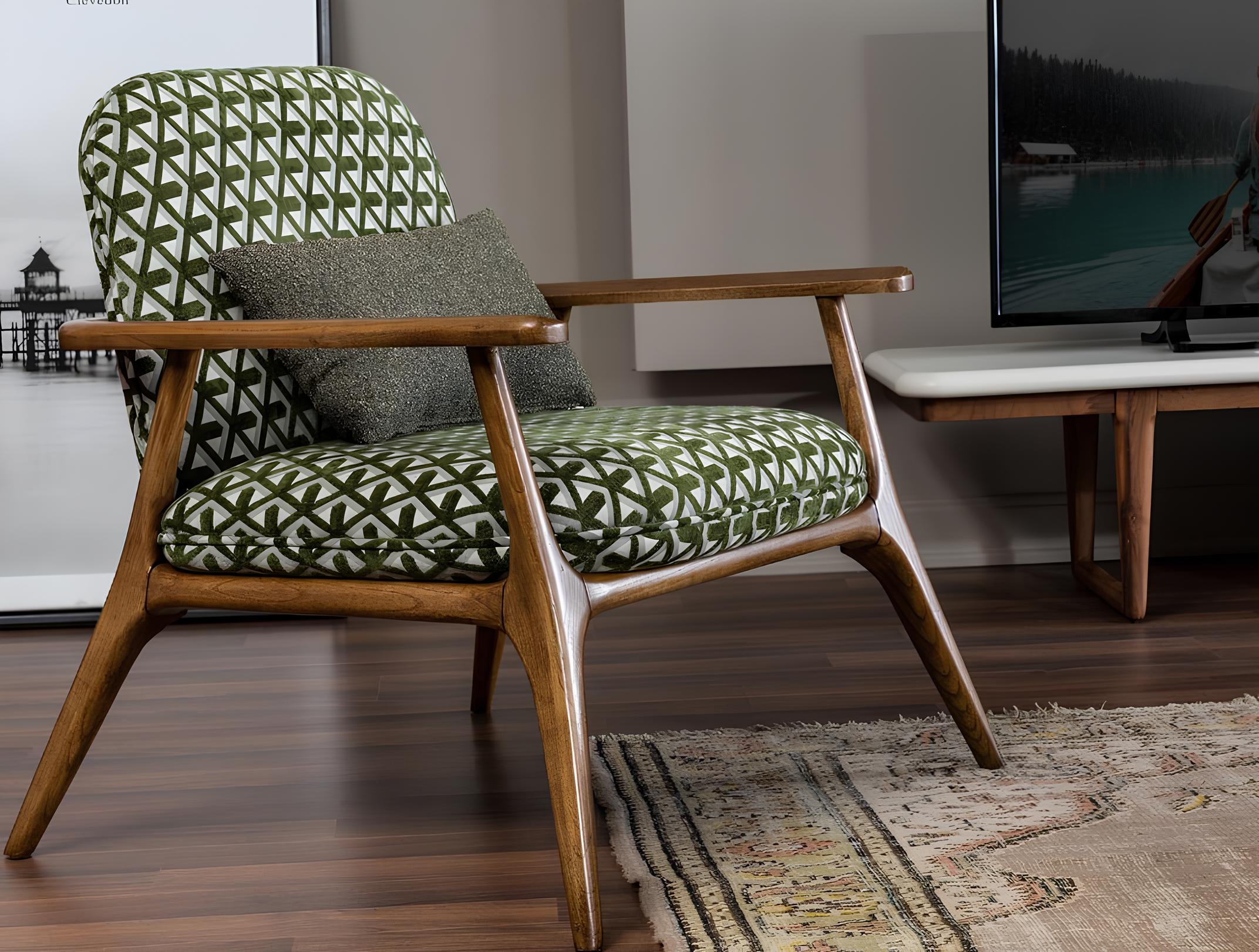 Siv koktajl stol brez naslonjala v zeleni tkanini