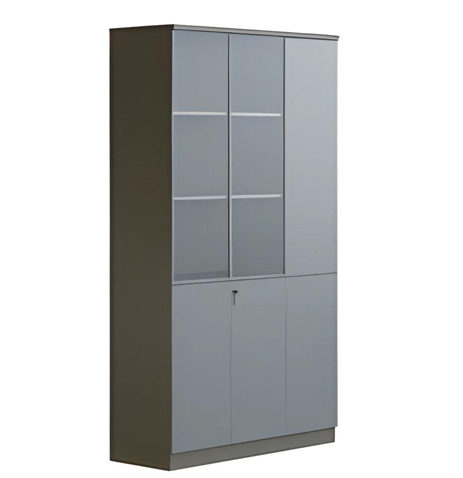 Moderna siva pisarniška omara z steklenimi vrati, z ključavnico, veliko shranjevanje