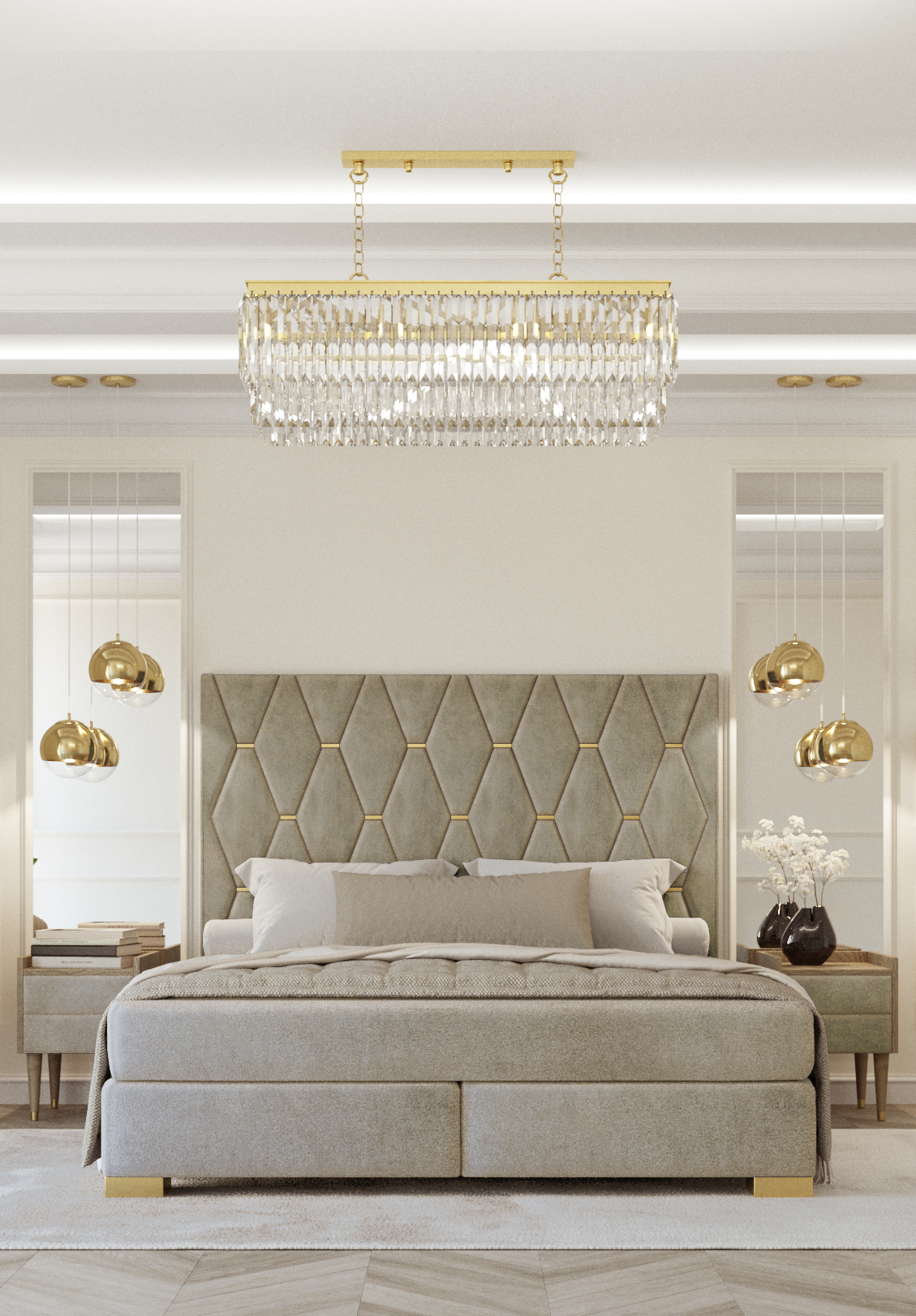 Graues Schlafzimmer Doppelbett Designer Nachttische Luxus 3tlg Garnitur