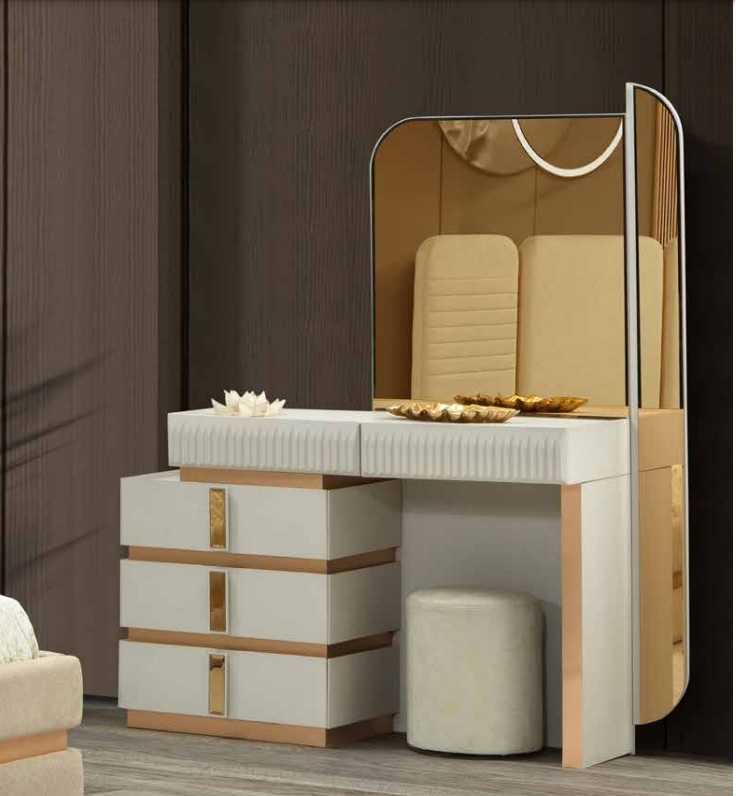 Modern Beige Schminktisch mit Spiegel Höhe 180 cm luxuriös Möbel neu