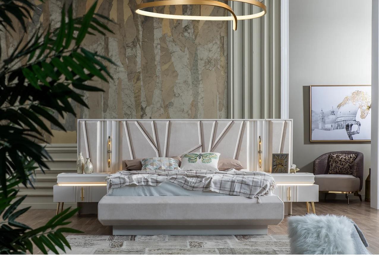 Schlafzimmer Set Luxus Komplettes Bett +2x Nachttische 3tlg. Modern Set