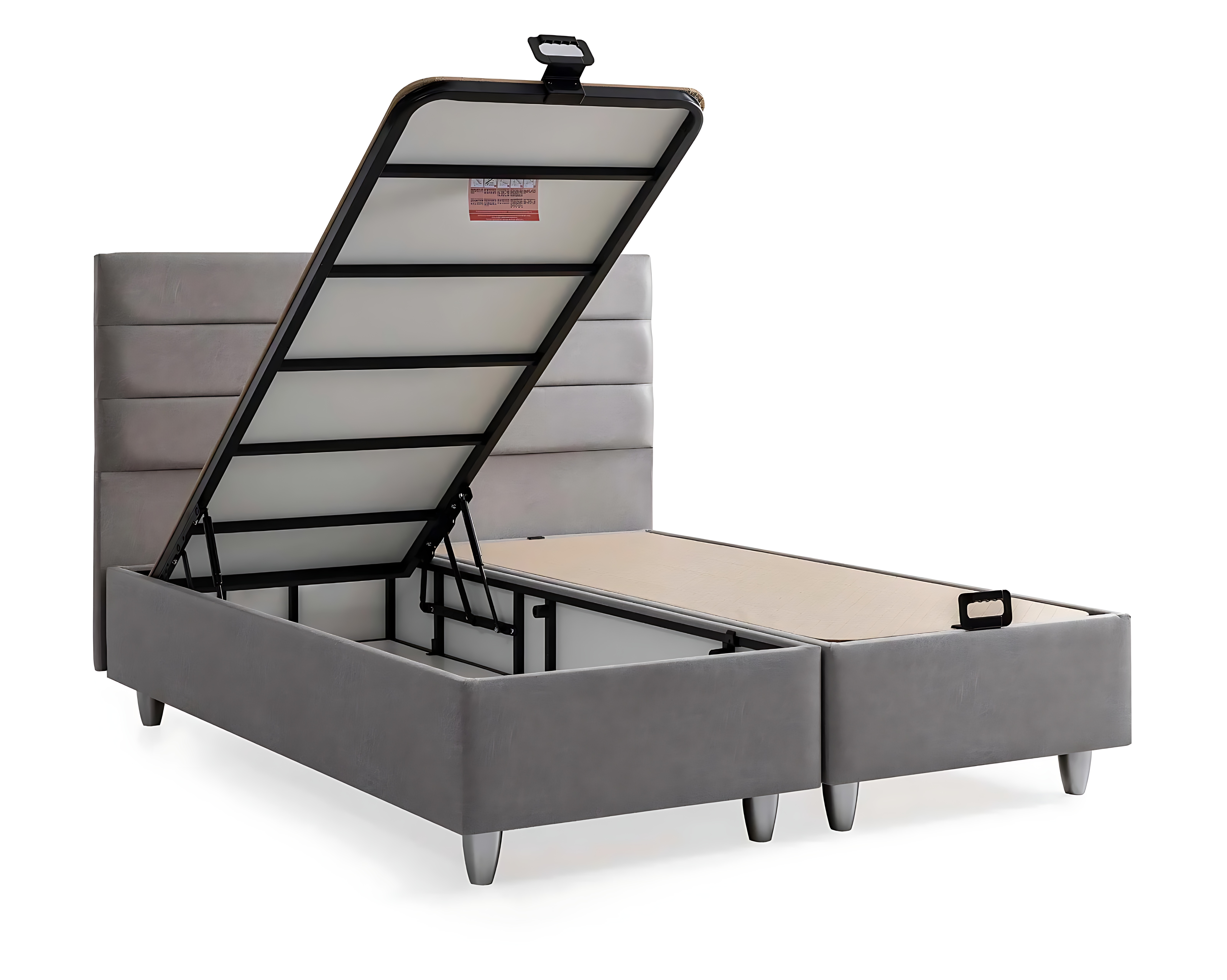 Elegantna postelja iz blaga in lesa z vzmetnico | xlposlovno.si
