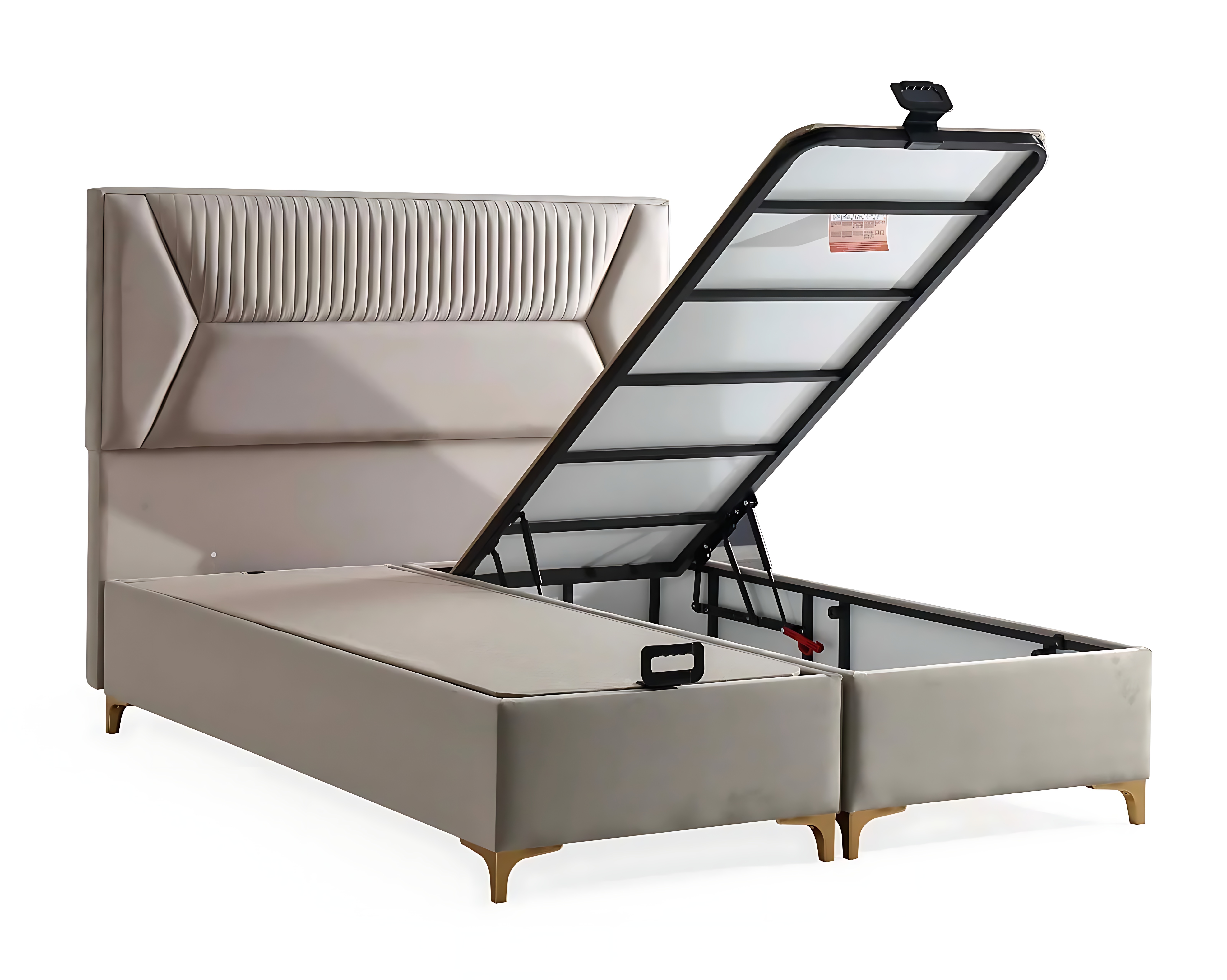 Postelja v bež barvi z blazino iz tkanine in lesa predstavlja vrhunec elegance in udobja. Njen prefinjen dizajn in skrbno izbrani materiali ustvarjajo prostor, ki žari s sofisticirano atmosfero. Bež barva nežno dopolnjuje vsak interier, medtem ko leseni elementi prinašajo naravno toplino. Blazina iz tkanine nudi podporo in udobje, ki ju potrebujete za miren spanec. S to posteljo ne le opremite svoj dom, temveč ustvarite oazo miru in razkošja. Izbirajte le najboljše za svoje življenje; ta postelja je simbol vrhunske kvalitete in ekskluzivnega sloga, ki ga ponuja naša blagovna znamka z dvajsetletno tradicijo v svetu luksuznega pohištva.