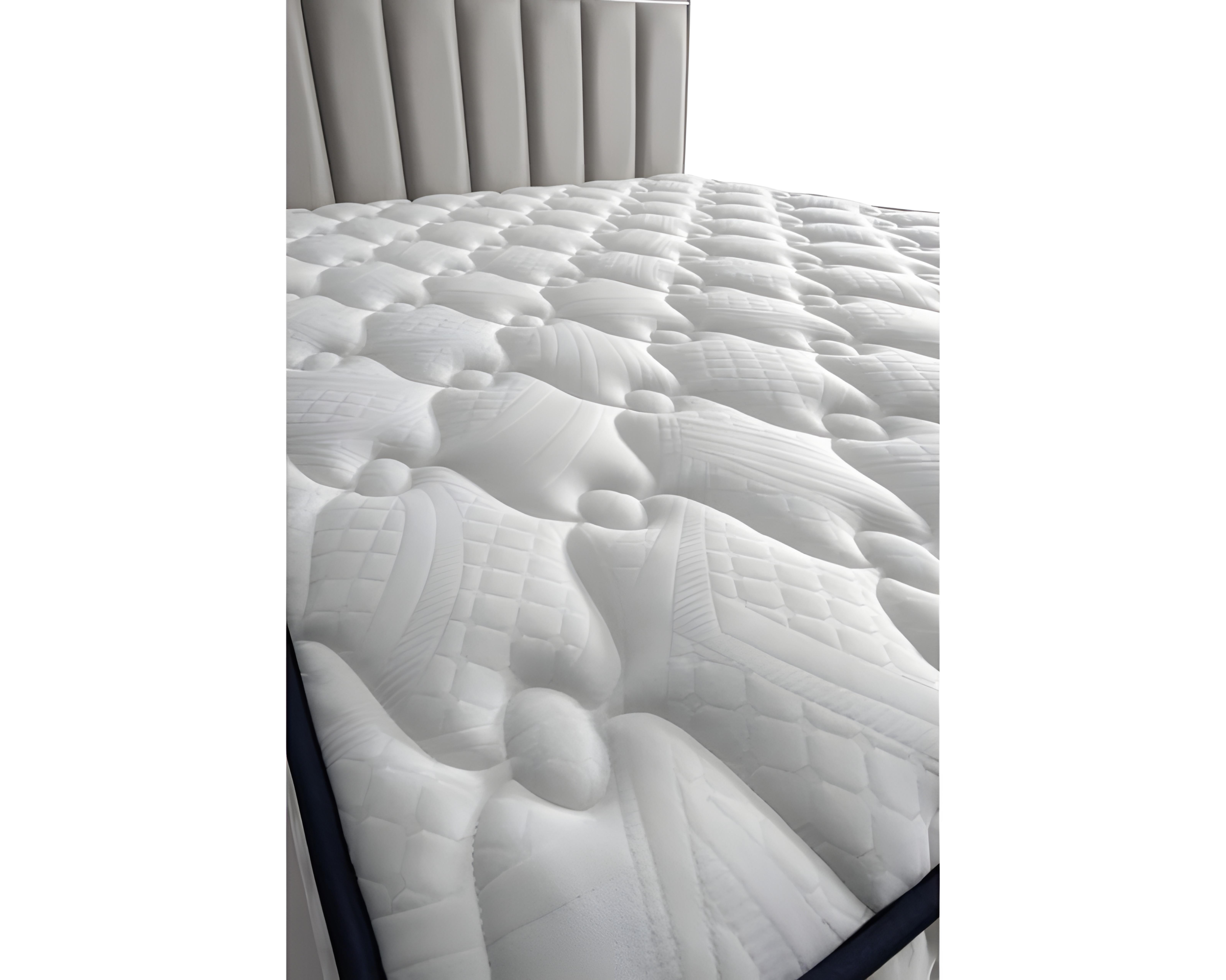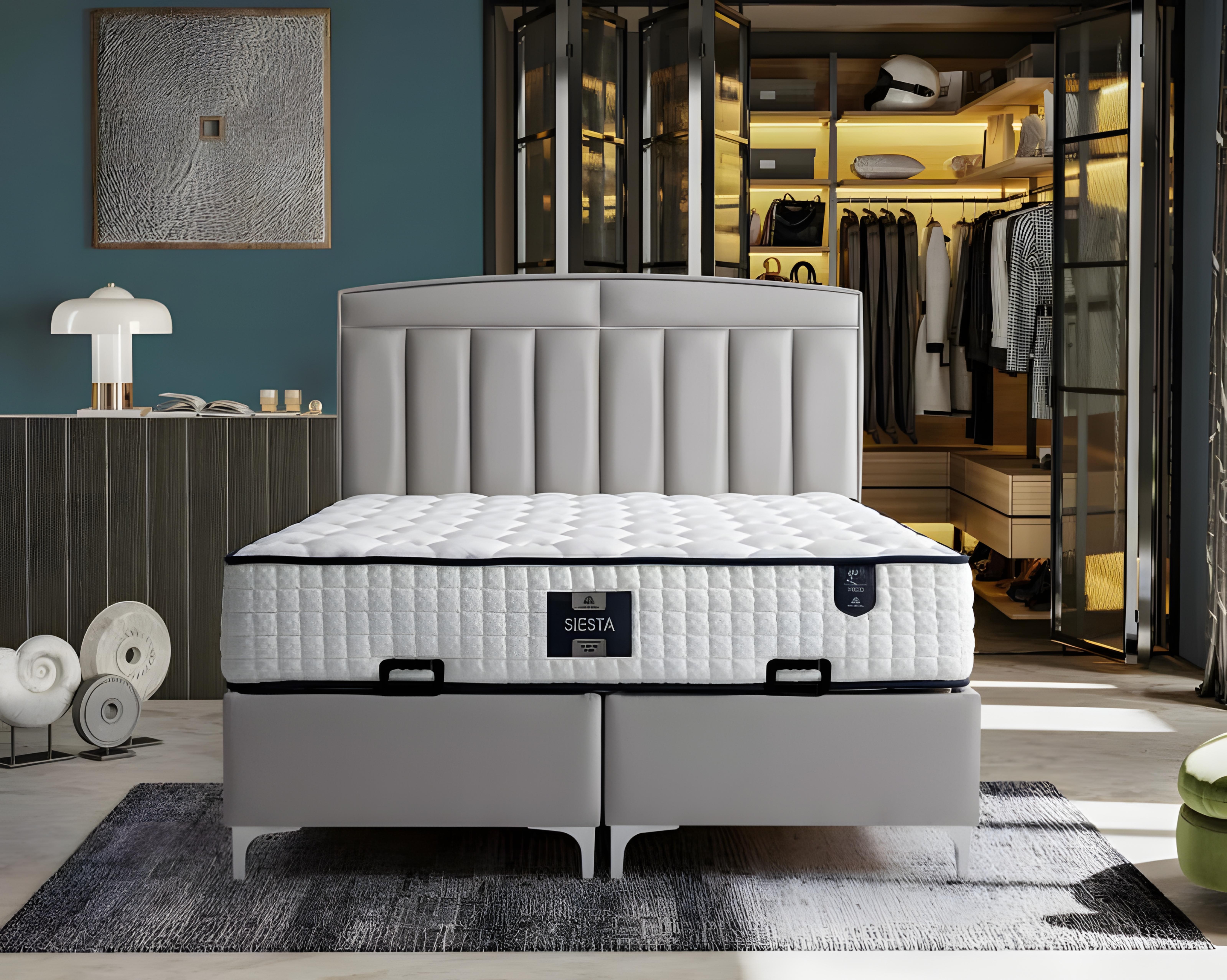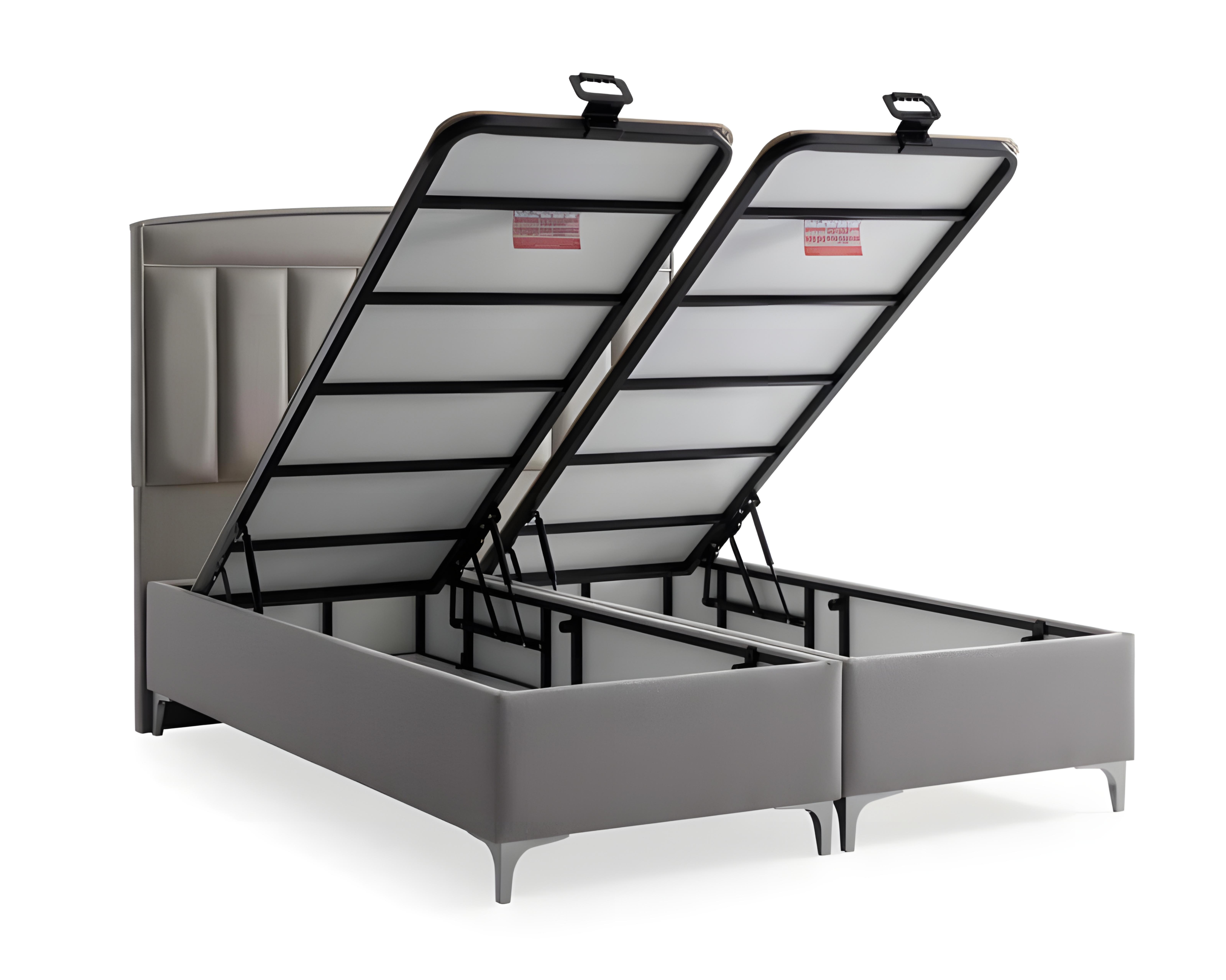 Moderna siva postelja s vzmetnico predstavlja vrhunec prefinjenega oblikovanja in udobja. Njen elegantni sivi les se brezhibno povezuje z vsakim interierjem, kar ustvarja občutek sofisticiranosti in miru. Postelja je zasnovana z mislijo na najvišje standarde kakovosti, kar zagotavlja dolgotrajno uporabo in neprekosljivo udobje pri spanju. Vsak detajl je skrbno dodelan, kar odraža našo dvajsetletno tradicijo v izdelavi luksuznega pohištva. Moderna siva postelja ni le kos pohištva; je simbol ekskluzivnega življenjskega sloga, ki ga privoščite le najboljšemu. Izberite to posteljo in svojemu domu podarite edinstveno eleganco.