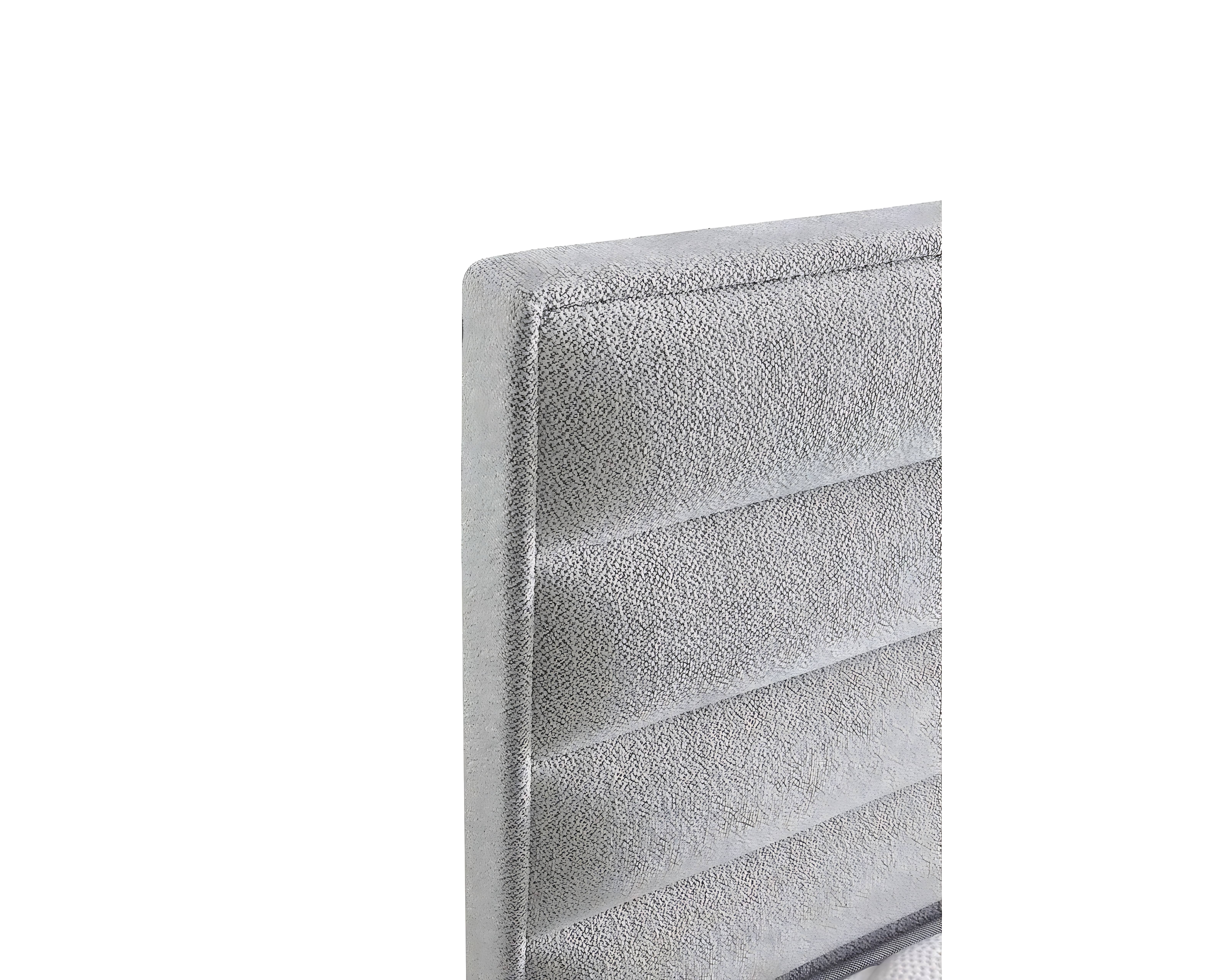 Postelja iz modernega sivega blaga z elegantno vzmetnico
