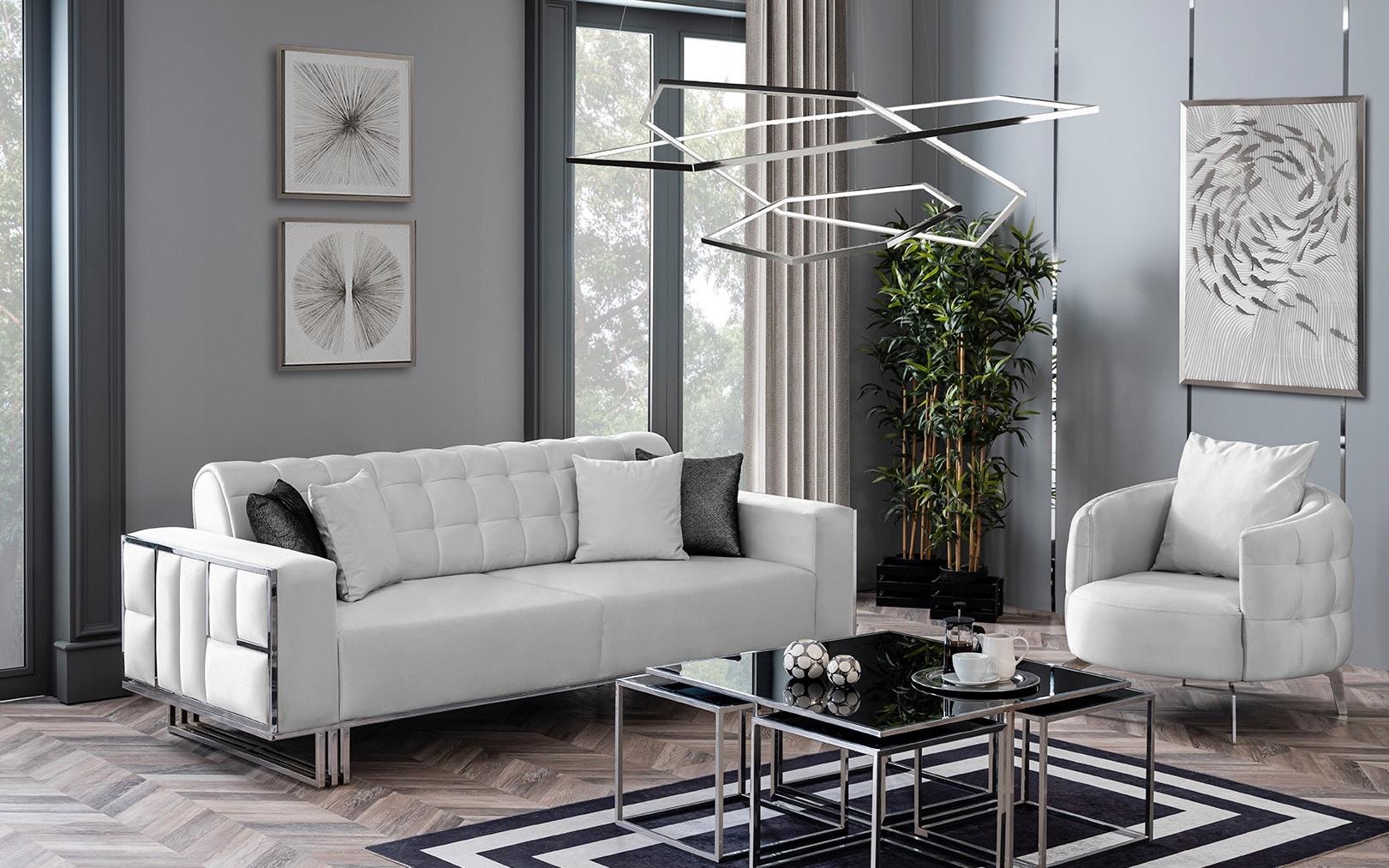 Sedežna garnitura 3+3+1 luksuzna skupina nova predstavlja vrhunec sodobne elegancije. Njen brezčasni dizajn v beli barvi iz visokokakovostnega poliestra je sinonim za sofisticiranost in udobje. Vsak detajl je skrbno oblikovan, da zagotovi ne le estetski užitek, temveč tudi funkcionalnost, ki se prilega vsakemu ekskluzivnemu domačemu ambientu. Garnitura natančno združuje razkošje in praktičnost, kar jo dela idealno izbiro za tiste, ki cenijo vrhunsko oblikovanje in udobje. S svojo prisotnostjo v prostoru ustvarja občutek miru in elegance, kar odraža življenjski slog, ki se razlikuje od ostalih. Uživajte v vsakem trenutku, ki ga preživite v objemu te prestižne garniture.