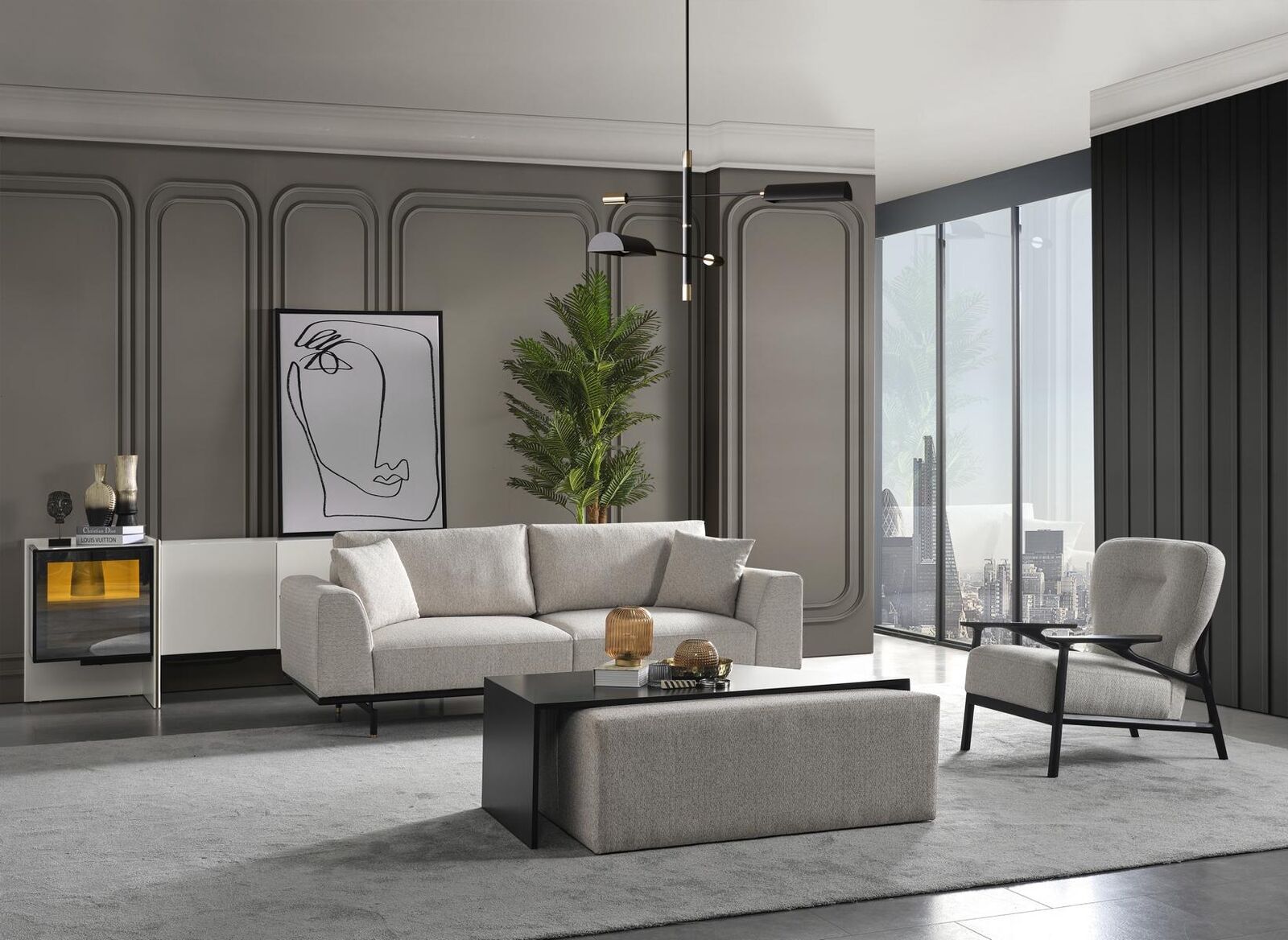 Erleben Sie pure Gemütlichkeit mit unserer komplett grauen Couchgarnitur! Das 4-teilige Set besteht aus einem großzügigen 4-Sitzer, einem bequemen 3-Sitzer, einem eleganten Sessel und einem praktischen Couchtisch. Die Maße sind perfekt abgestimmt, um Ihrem Wohnzimmer einen modernen Look zu verleihen. Der 4-Sitzer misst ca. 260 cm in der Länge, der 3-Sitzer ca. 230 cm und der Sessel ca. 80 cm. Hergestellt aus hochwertigem Holz und Stoff, bietet dieses Sofa-Ensemble Komfort auf höchstem Niveau. Die Farbe grau ist zeitlos und passt zu jedem Einrichtungsstil. Erweitern Sie Ihr Wohnzimmer um diese stilvolle Couchgarnitur und machen Sie es zum Mittelpunkt gemütlicher Abende mit Familie und Freunden. Kontaktieren Sie uns für weitere Farboptionen und Größenanpassungen!