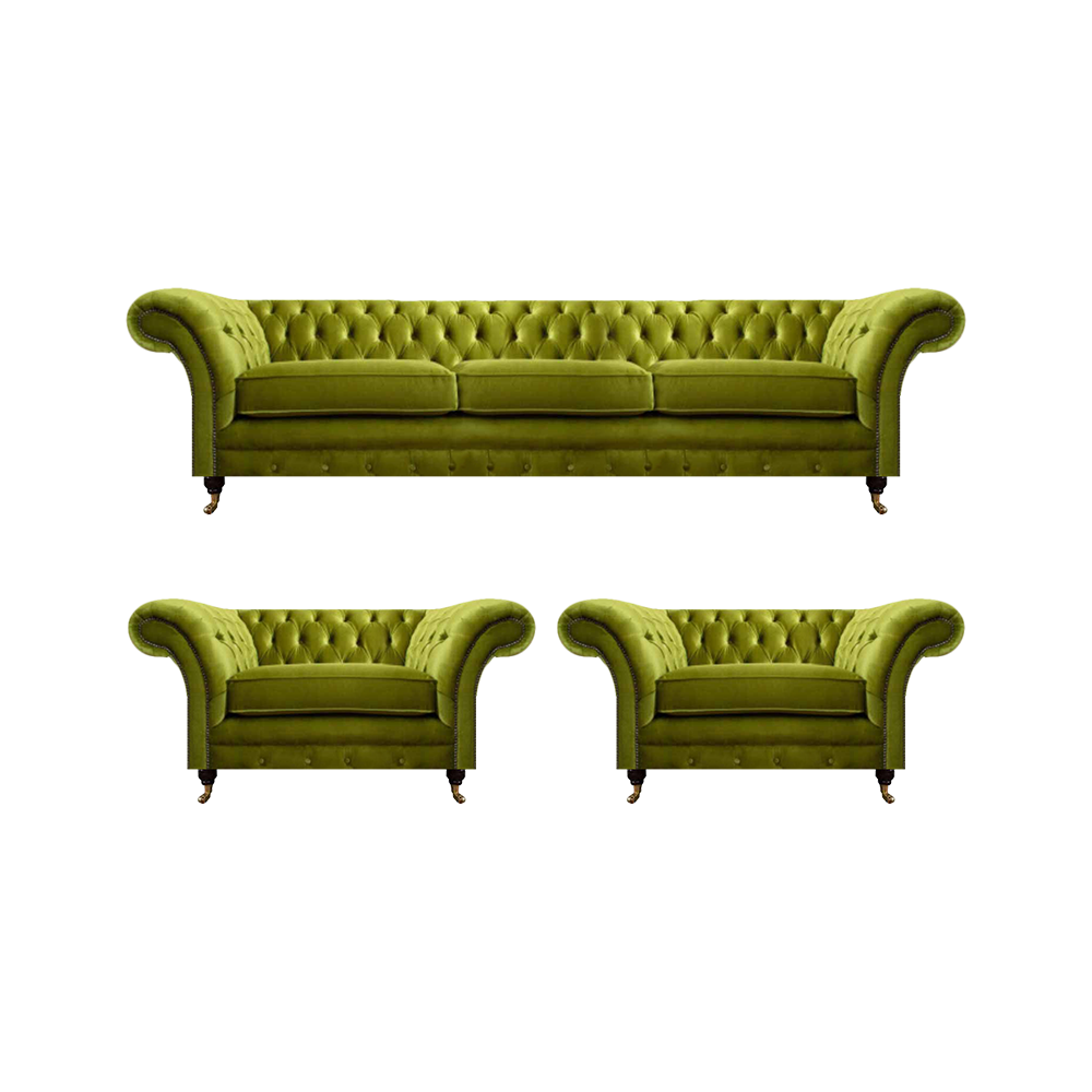 Olivengrüne Wohnzimmer Garnitur Chesterfield Polstercouch 2x Sessel 3tlg