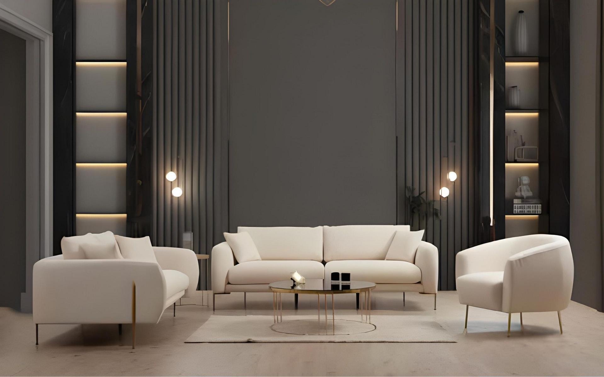 Set kavča za dnevno sobo, trosed, je vrhunec sodobne elegancije. Izdelan iz kakovostnega belega poliestra, ta luksuzna blazina prinaša občutek nedosegljivega udobja in sofisticiranosti v vašo dnevno sobo. Njegova brezčasna oblika in premišljena zasnova se brez težav vključita v različne notranje sloge, kar omogoča ustvarjanje ekskluzivnega domačega ambienta. Združuje funkcionalnost in estetiko, kar ga postavlja med najbolj zaželjene kose pohištva. Z več kot dvajsetletno tradicijo v svetu luksuznega pohištva, ta trosed ne le da izpolnjuje visoke standarde kakovosti, temveč tudi obdarja vsak prostor s pridihom prestiža. Idealna izbira za tiste, ki cenijo lepoto in udobje.