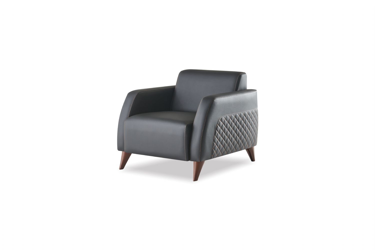 Sessel Schwarz Lehnsessel Leder Modern Holz Weiche Armlehnen 1-Sitzer