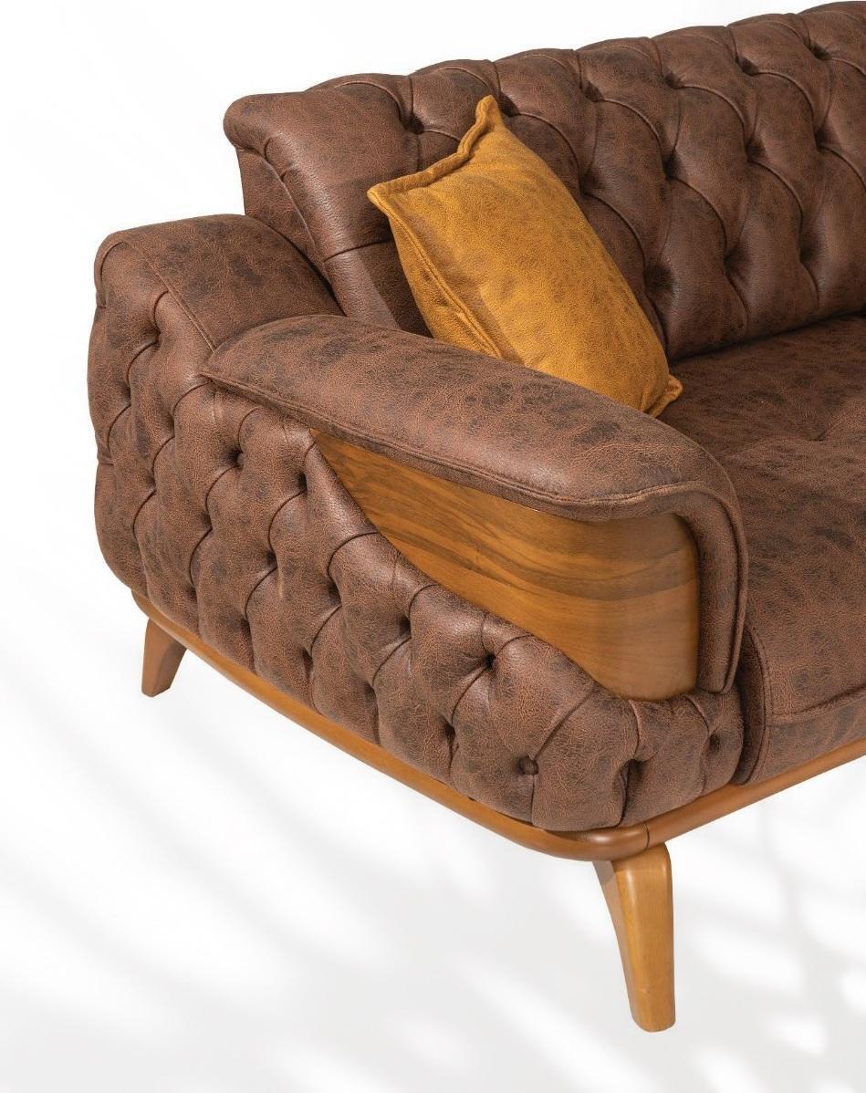 Dreisitzer Sofa Luxus Sitzer Chesterfield Leder Braun Design Wohnzimmer