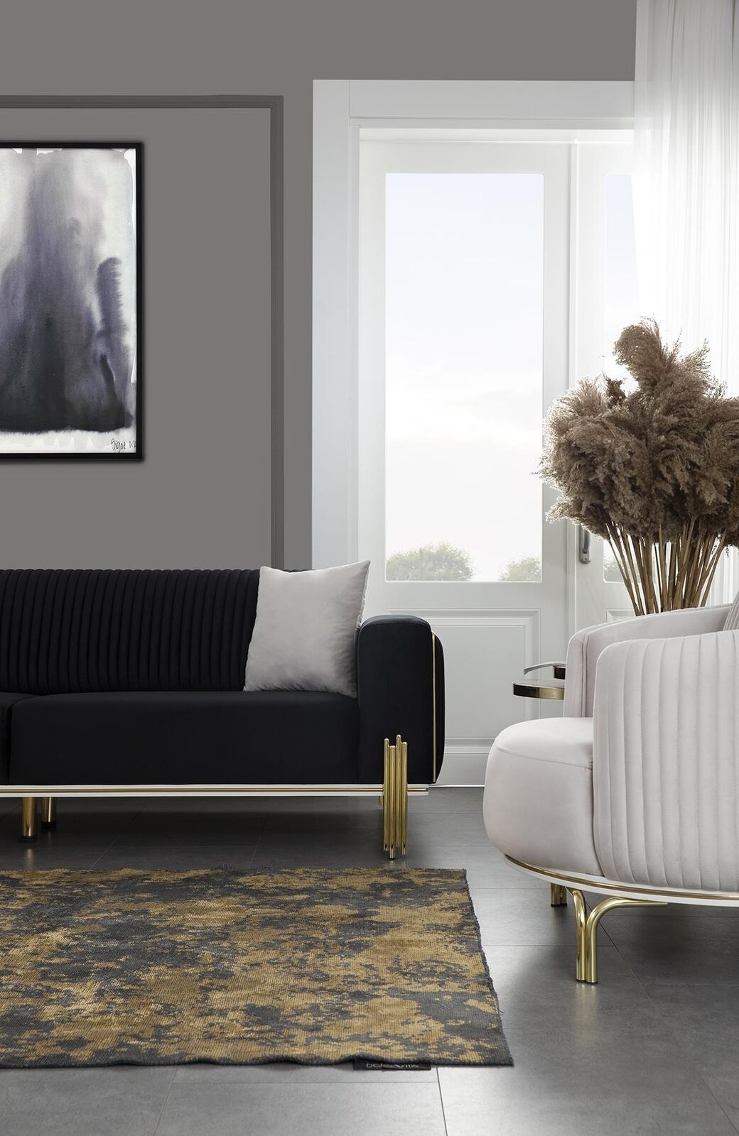 Moderner Schwarzer Dreisitzer, Edelstahl, Couch, Design