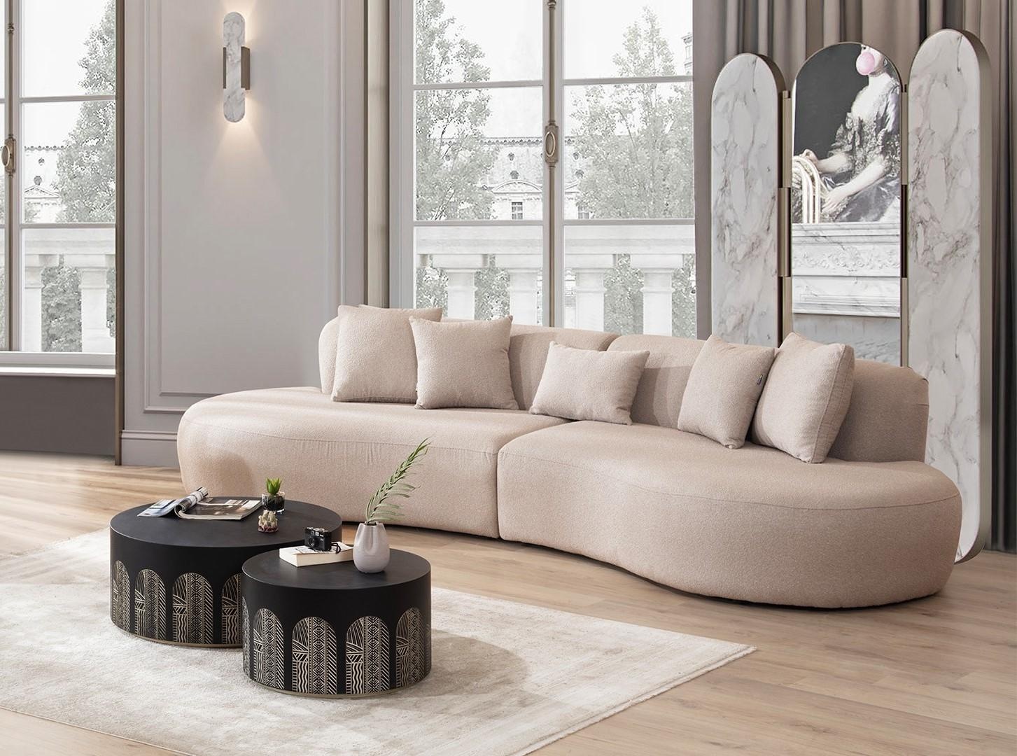 Ovalni kavč Big za dnevno sobo 340 cm xxl predstavlja vrhunec prefinjenosti in udobja. Njegova bež poliester prevleka se nežno zliva z različnimi interierji, hkrati pa nudi izjemno trajnost in enostavno vzdrževanje. Ta izjemno prostoren kavč je oblikovan za tiste, ki cenijo eleganco in prostornost, kar omogoča brezskrbno druženje v vsakem trenutku. Njegova ergonomska zasnova in bogate oblazinjene površine zagotavljajo vrhunsko udobje, ki ga ne boste želeli zapustiti. Izberite Ovalni kavč Big, simbol ekskluzivnega življenjskega sloga, ki ga nudi že dve desetletji. Idealna izbira za vašo dnevno sobo, kjer se srečata stil in funkcionalnost.